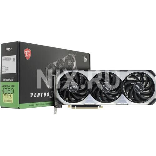 Видеокарта PCI-E MSI 8GB GDDR6 128bit 5nm 1830/17000MHz HDMI/3*DP Ret GeForce RTX 4060 VENTUS 3X (RTX 4060 VENTUS 3X 8G OC)