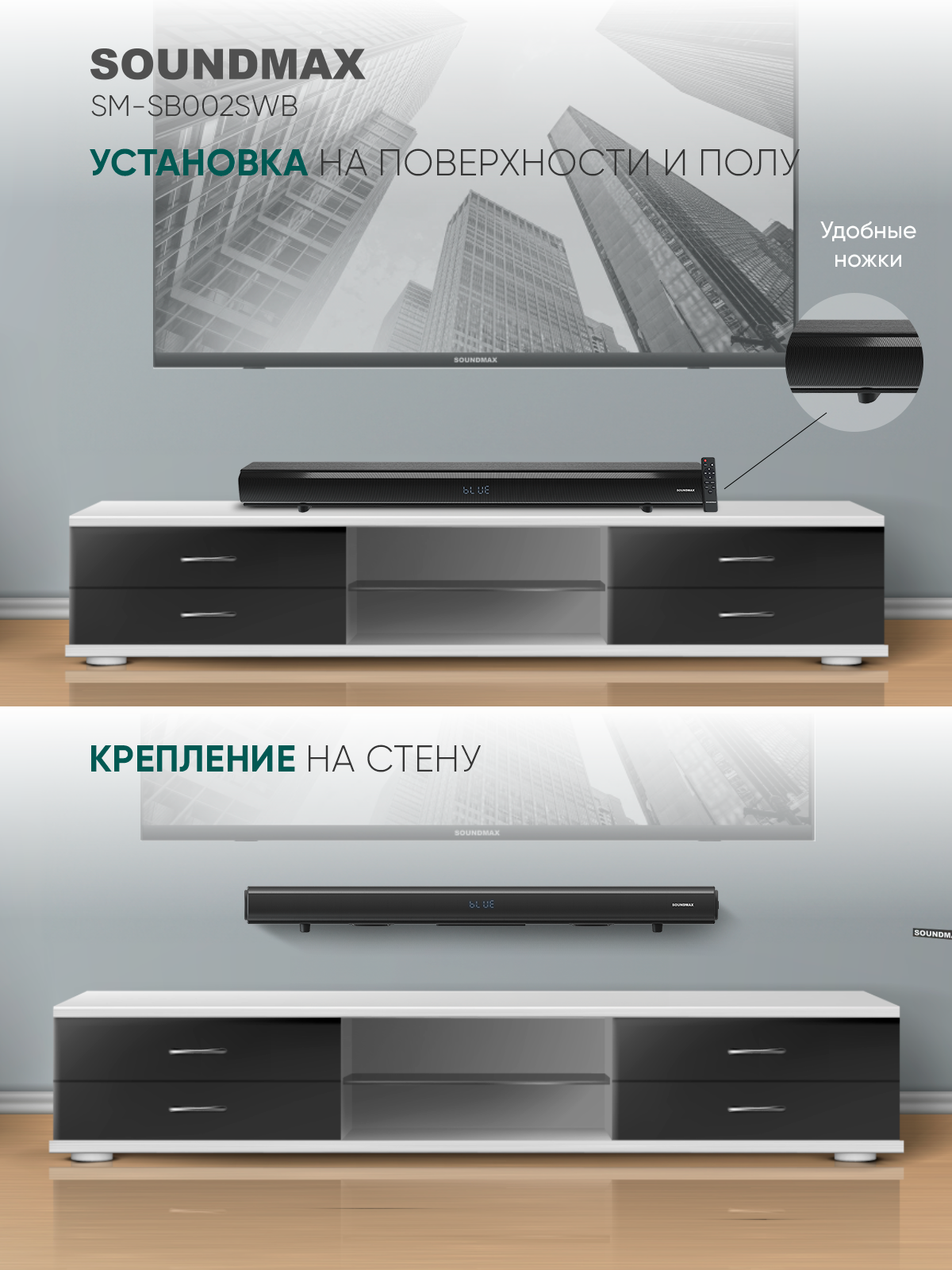 Саундбар SM-SB002SWB может быть легко установлен на стену или другую поверхность благодаря специальным креплениям. Это дает вам возможность выбрать наилучшее расположение и оптимизировать звучание для вашего помещения.