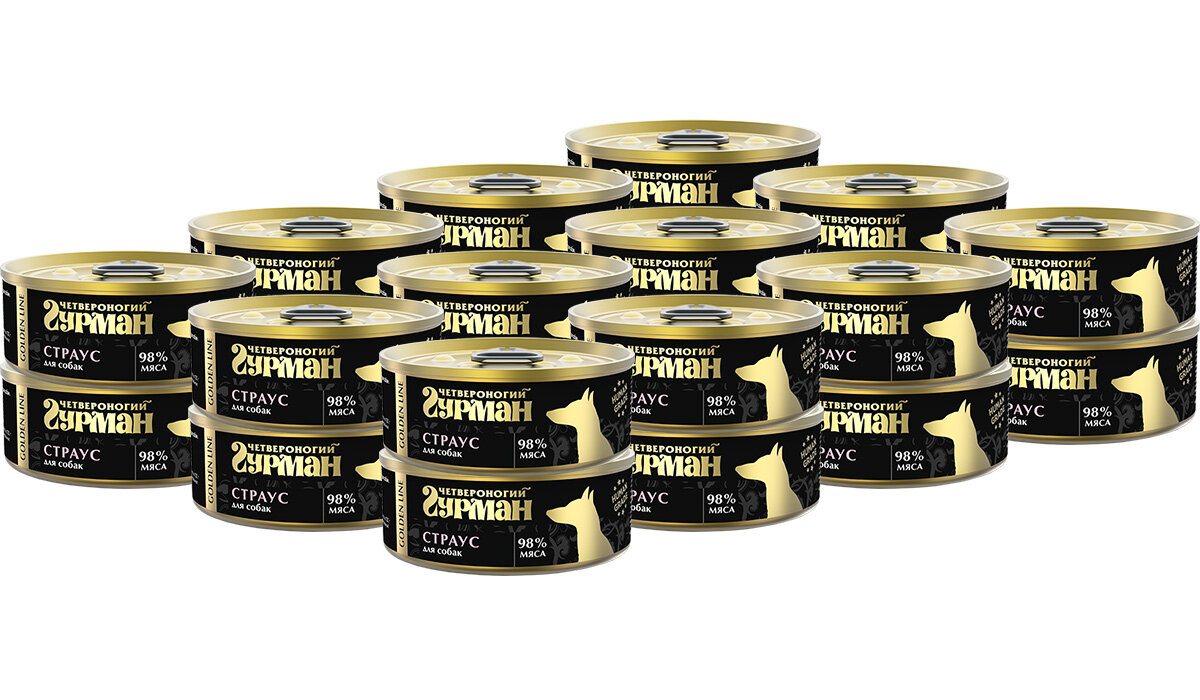 Четвероногий гурман GOLDEN LINE для собак – это влажный корм суперпремиум класса, приготовленный из одного вида мяса качества Human grade.Ключевые особенности:Сырье высшего качества.Исключительно натуральные ингредиенты.Сырье, пригодное в пищу человеку.Настоящее мясо в банке.Корм полностью натуральный – в его составе нет искусственных красителей, ароматизаторов, усилителей вкуса и ГМО. Открыв баночку, вы увидите крупно нарезанное сочное филе.GOLDEN LINE – это 98% настоящего мяса в натуральном ароматном желе.Подходит для собак всех пород, а также для питомцев, которым показана строгая или монобелковая диета.Состав: мясо страуса, вода питьевая, желирующая добавка.