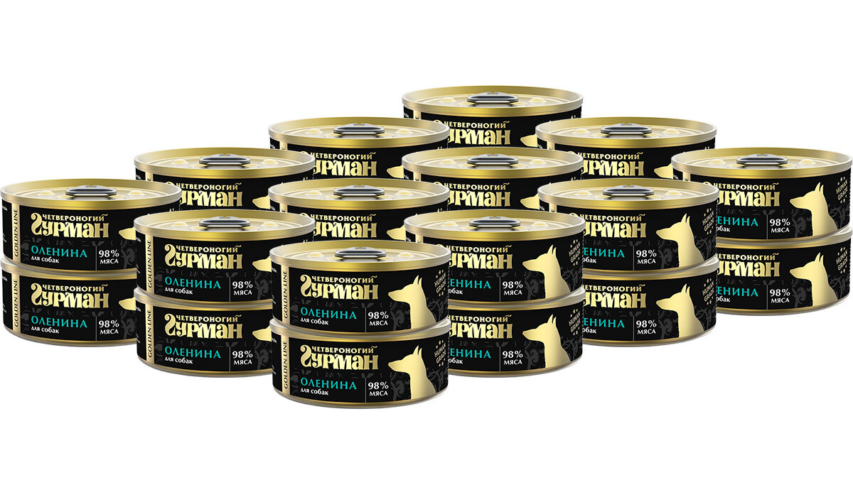 Четвероногий гурман GOLDEN LINE для собак – это влажный корм суперпремиум класса, приготовленный из одного вида мяса качества Human grade.Ключевые особенности:Сырье высшего качества.Исключительно натуральные ингредиенты.Сырье, пригодное в пищу человеку.Настоящее мясо в банке.Корм полностью натуральный – в его составе нет искусственных красителей, ароматизаторов, усилителей вкуса и ГМО. Открыв баночку, вы увидите крупно нарезанное сочное филе.GOLDEN LINE – это 98% настоящего мяса в натуральном ароматном желе.Подходит для собак всех пород, а также для питомцев, которым показана строгая или монобелковая диета.Состав: оленина, вода питьевая, желирующая добавка.