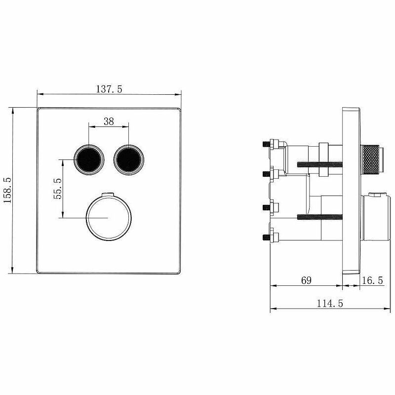 Встраиваемый смеситель для душа двухфункциональный, термостатический, хром