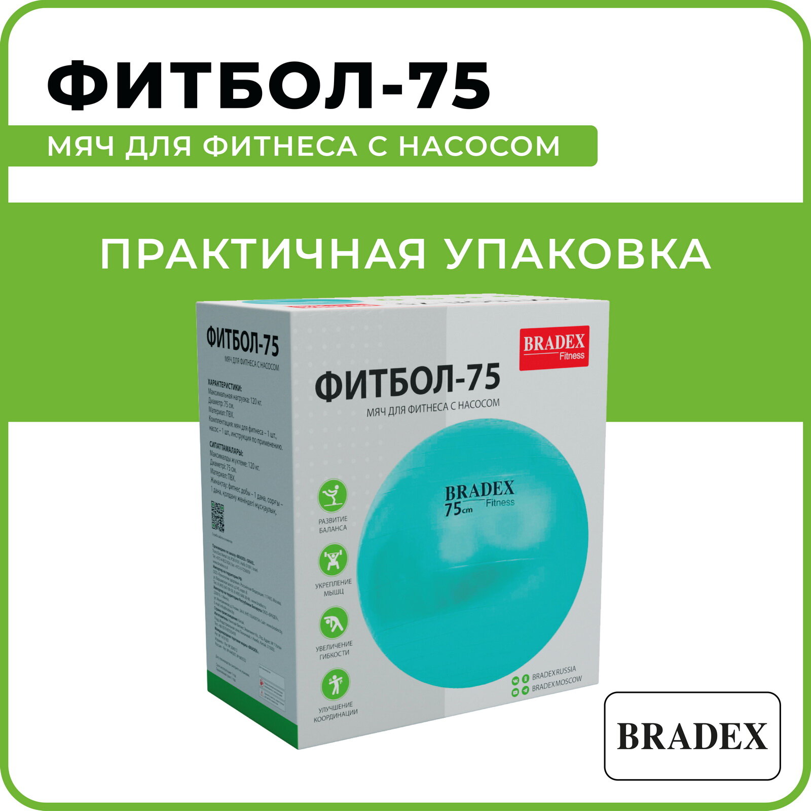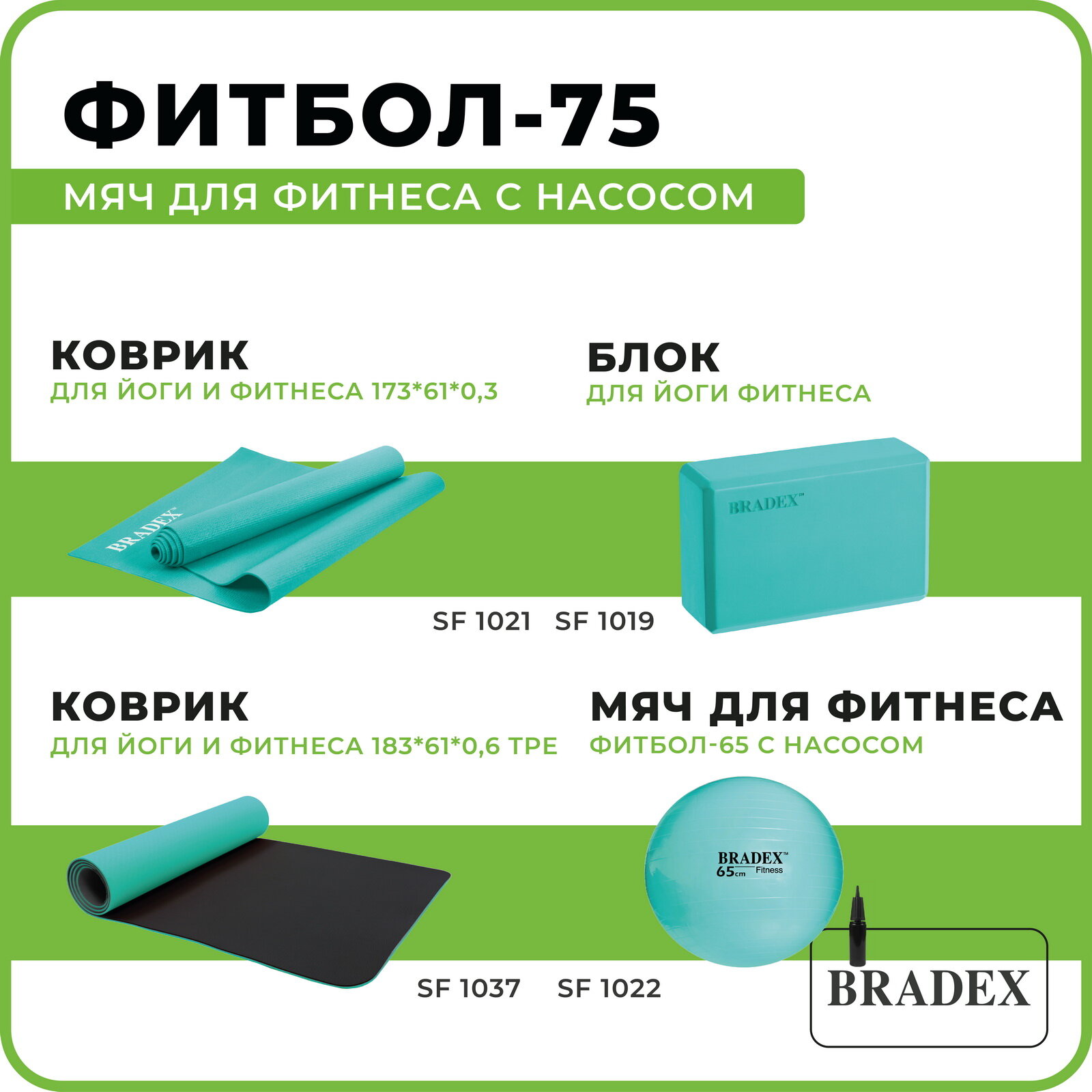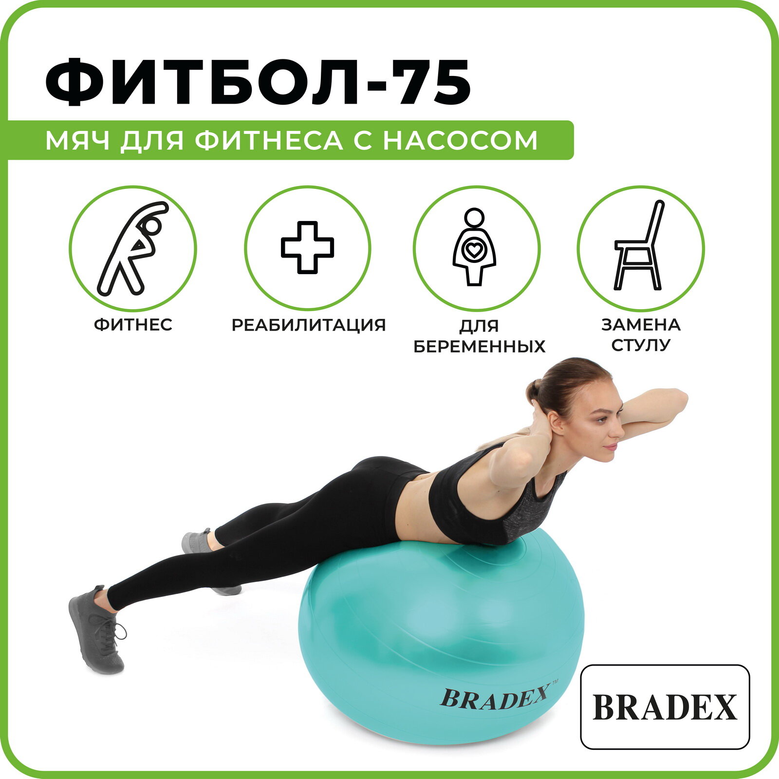 Мяч для фитнеса «ФИТБОЛ-75» с насосом мятный Bradex SF 1023