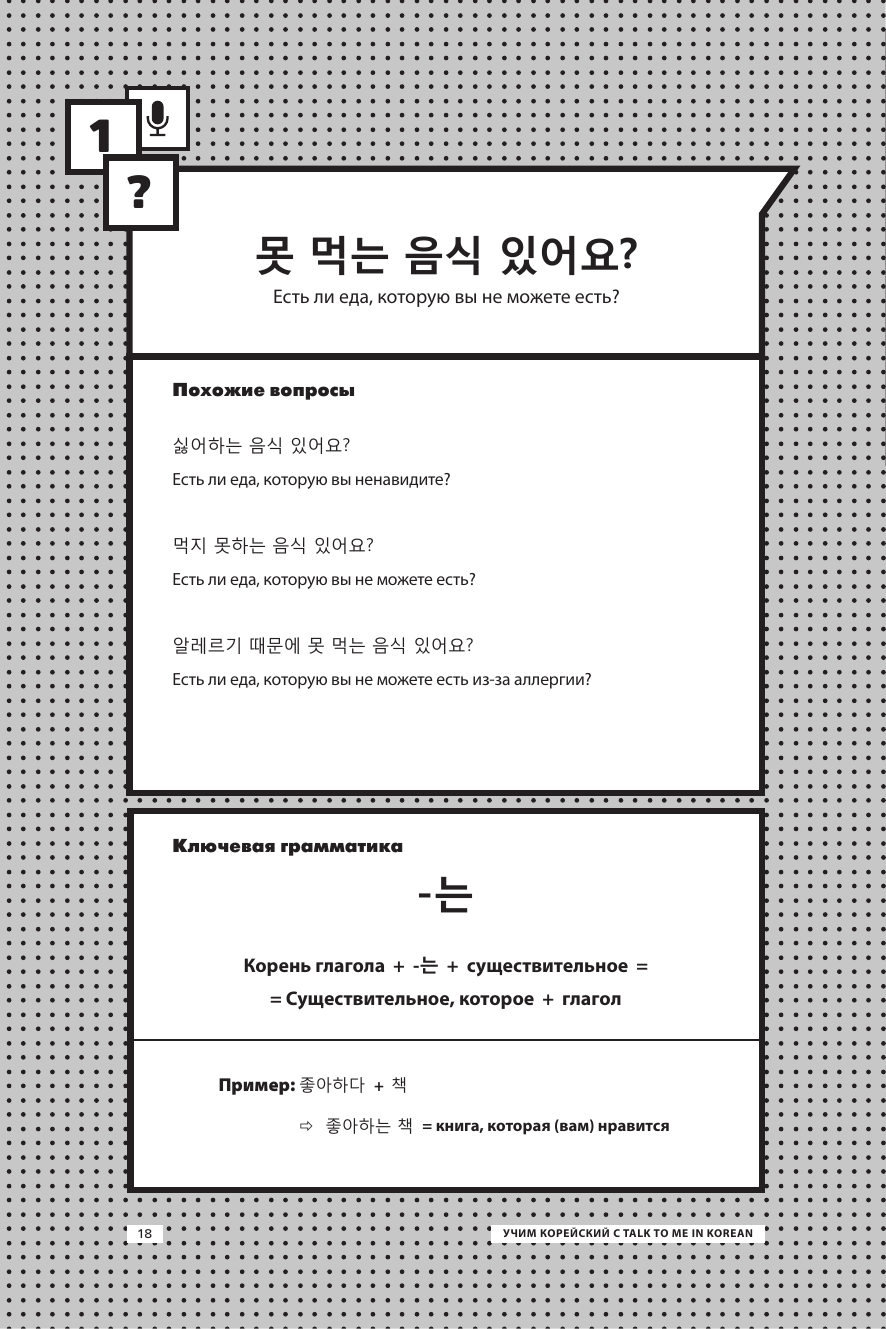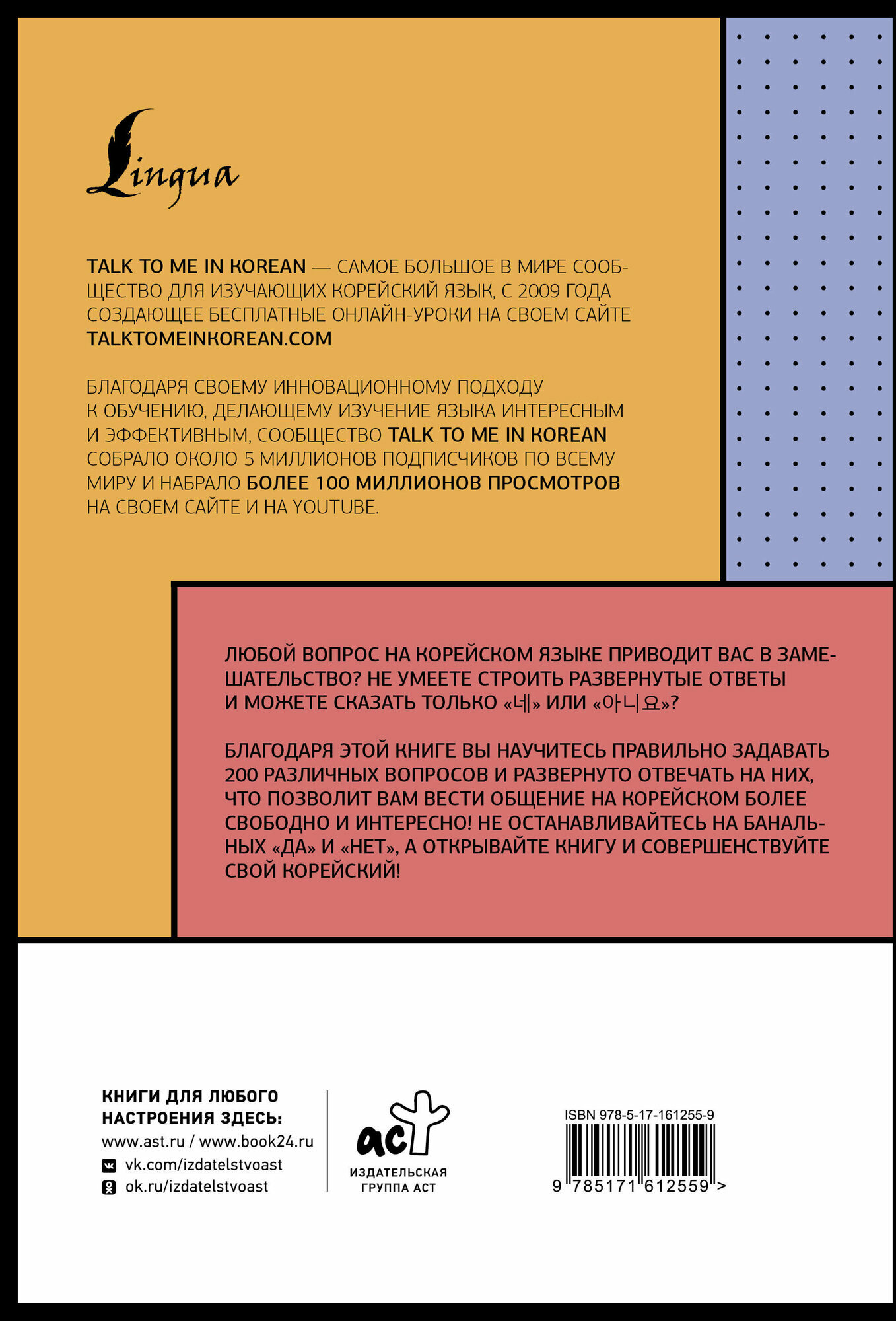 Перед вами инновационное и увлекательное учебное пособие от Talk To Me In Korean - самого большого сообщества по изучению корейского языка в мире. Talk To Me In Korean - это команда профессиональных преподавателей корейского языка, выпустивших более 100 миллионов онлайн-уроков и около сотни учебных пособий, а также собравших более 5 миллионов подписчиков по всему миру! "Учим корейский с Talk To Me In Korean" - идеальная книга для всех, кто хочет научиться говорить по-корейски, используя интересные грамматические конструкции и необычную лексику. Преподаватели Talk To Me In Korean собрали самые распространенные вопросы и подобрали к ним разные ответы, чтобы любой обучающийся корейскому языку смог заговорить по-корейски уже сейчас! Книга будет полезна всем, кто изучает корейский язык и желает повысить навыки общения на корейском языке, сделав свою речь разнообразнее и интереснее.