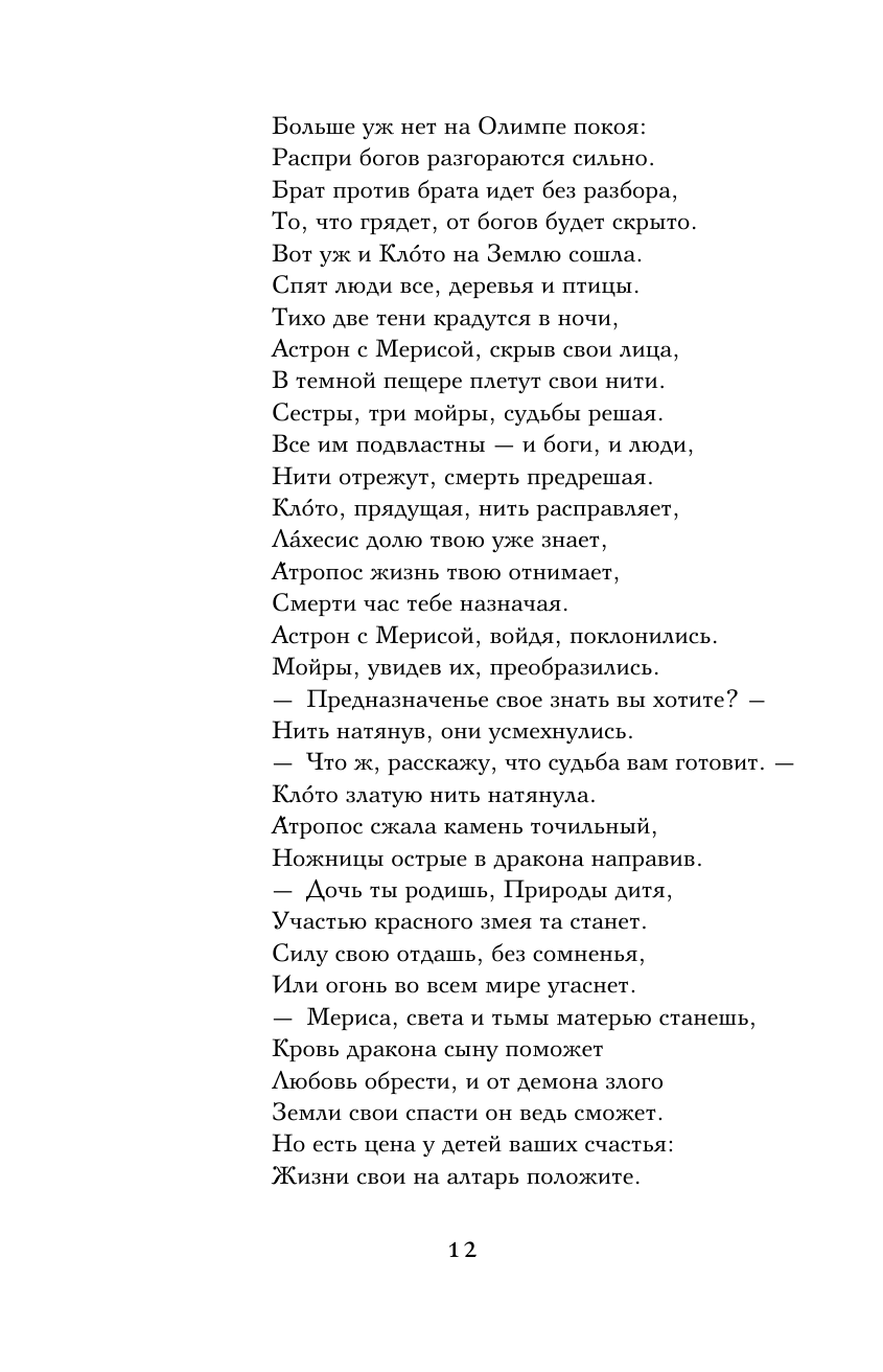 Интстрох - дух первого божества, воссозданного из тьмы и праха, умирает. Его дети, Зевс и Аид, затевают кровопролитную войну, в которой истребляют всех в попытке завладеть магией и захватить власть. Перед тем, как кануть в Забвение, Интстрох предрекает внучкам - трем мойрам - воссоздать континенты, на которых каждый сможет жить в безопасности.Пока среди богов идет война, на свет рождаются двое. Михаэль - потомок дракона, и Селестия - дриада, которой подвластна магия огня и природы. Ему уготована судьба великого правителя, ей - жертвы во имя Древних. Проходят годы, прежде чем магия мойр начинает пробуждаться, подталкивая дриаду и дракона к судьбоносной встрече. Сражаясь на одной стороне, они должны помнить главный завет, который закончит войну богов.Огонь - освобождает.Смерть - благословляет.Жизнь - проклинает.И когда бог смерти споет свою последнюю песнь, миру наступит конец.