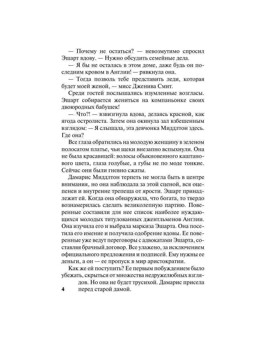 Что нужно богатой наследнице, чтобы достичь высокого положения в лондонском свете? Разумеется, титулованный муж. Однако выбранная добыча Дамарис Миддлтон — маркиз Эшарт — неожиданно срывается с крючка...Упрямая барышня не желает отступать и собирается вновь раскинуть сети, а в этом ей может помочь лучший друг маркиза Октавиус Фитцроджер — мужчина нуобычайного обаяния, способный покорить сердце любой женщины. Увы, у него нет титула, а потому он абсолютно не подходит ей в мужья.Влюбляться нельзя ни в коем случае — Дамарис твердит себе об этом день за днем. Однако чем теснее судьба сводит ее с октавиусом, тем меньше сердце девушки прислушивается к доводам разума и здравомыслия.