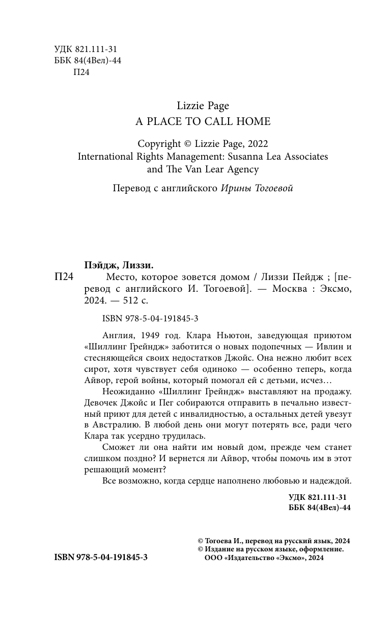Место которое зовется домом (Лиззи Пэйдж); Эксмо, Inspiria, Редакция 1, 2024