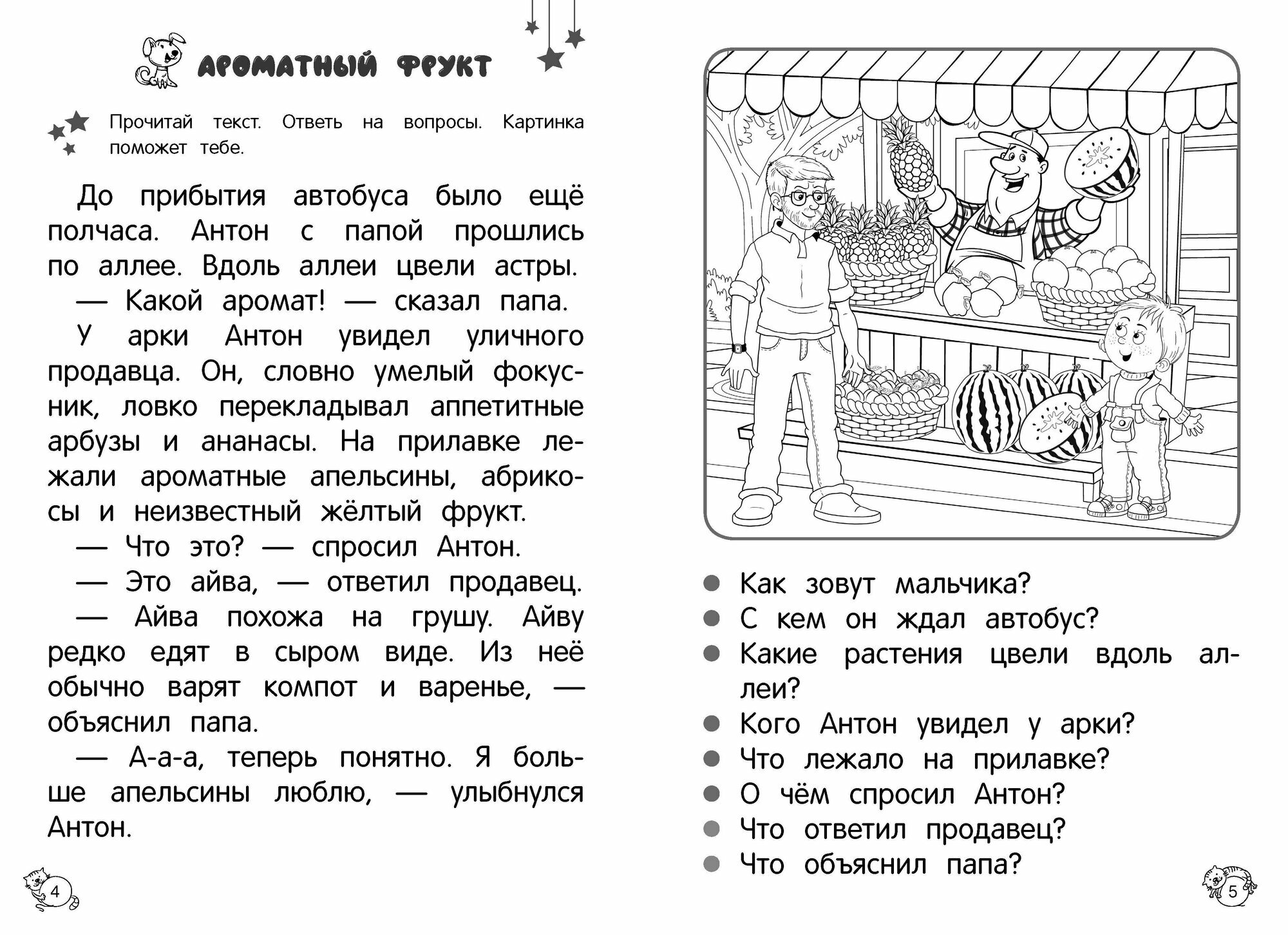 Благодаря этому пособию будущий первоклассник сможет потренировать навык самостоятельного осмысленного чтения. Выполняя простые увлекательные задания ребёнок, будет отвечать на вопросы по содержанию, научится пересказывать с опорой на картинки, будет определять место слога в слове, составлять слова из букв и других слов, различать предложения по интонации, разгадывать ребусы, расшифровывать слова, а также обогатит словарный запас, разовьет мышление и связанную речь. Адресовано старшим дошкольникам, их родителям и воспитателям.