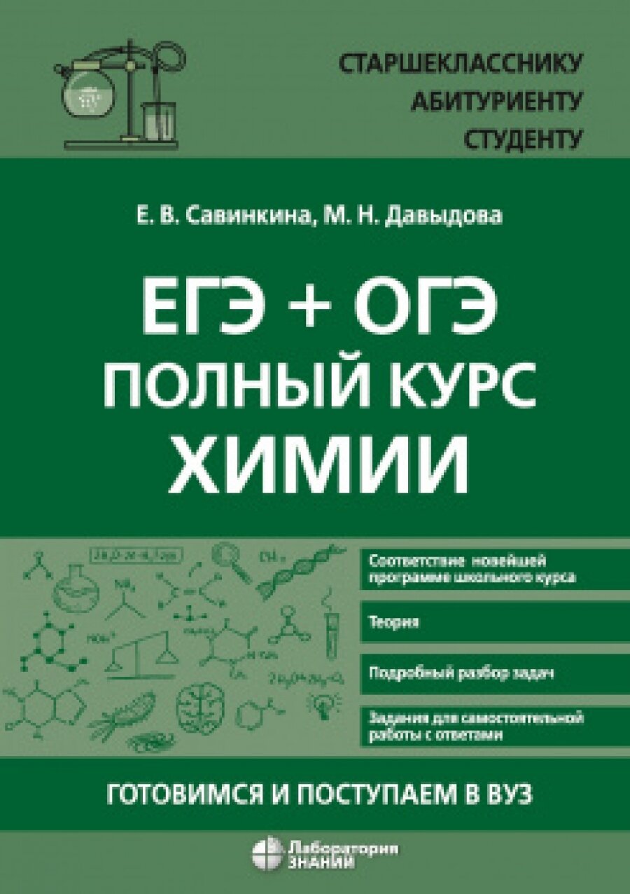 ЕГЭ + ОГЭ. Полный курс химии. Готовимся и поступаем в вуз (Савинкина Елена Владимировна, Давыдова Маргарита Николаевна); Лаборатория знаний, 2024