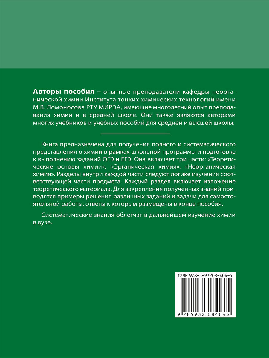 Пособие предназначено для получения полного и систематического представления о химии в рамках школьного курса (по новой Федеральной образовательной программе) и подготовке к выполнению заданий ОГЭ и ЕГЭ.