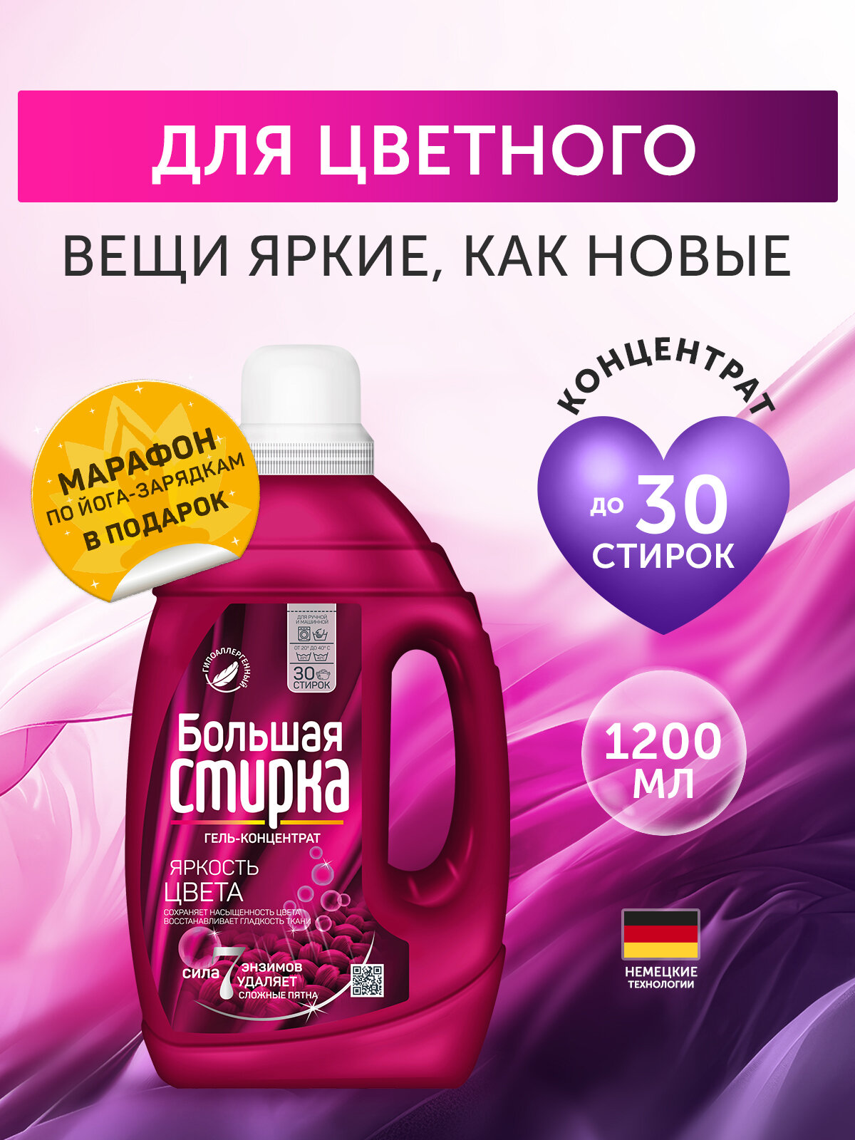 Предназначено для ежедневной стирки изделий из разных видов ткани, кроме шерстяных и шёлковых. Сохраняет и восстанавливает цвет, обладает эффектом кондиционирования.