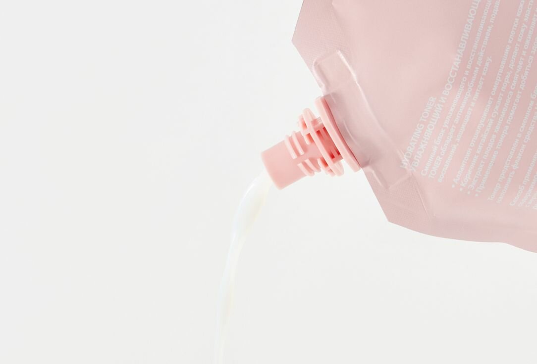 Тонер представлен в сменном блоке, с помощью которого можно быстро наполнить флакон средства Hydrating Toner в объеме 100 мл.