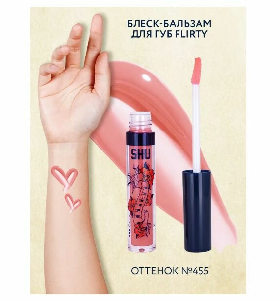 SHU Блеск-бальзам для губ №455 нежный розовый / FLIRTY 24 мл (134SH16282)