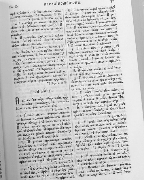 Библия на церковнославянском языке, отпечатанная на качественной тонкой офсетной бумаге в один цвет, является репринтным изданием. Содержит Книги Священного Писания Ветхого и Нового Завета с параллельными местами. По благословению Святейшего Патриарха Московского и всея Руси Кирилла.