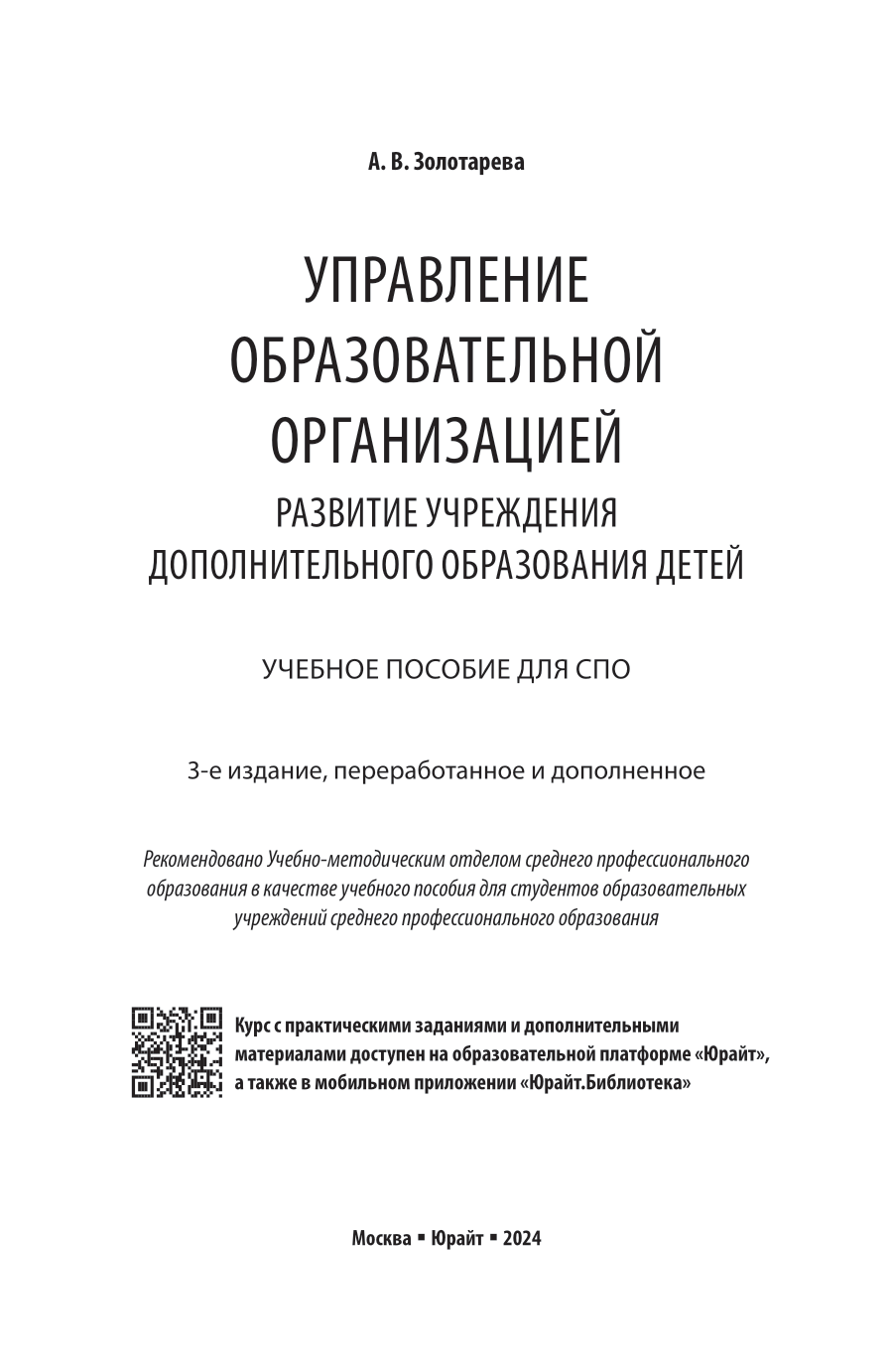 Сервис сравнения цен СкидкаГИД предлагает сравнить цены на товар «Книга: Управление образовательной организацией. Развитие учреждения дополнительного образования детей 3-е изд. пер. и доп. Учебное пособие для СПО (Ангелина Викторовна Золотарева); ЮРАЙТ, 2024»