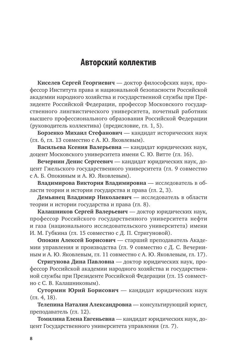 Рассматривается широкий спектр общетеоретических, методологических и прикладных вопросов государства и права, особенностей государственно-правового регулирования российского общества. Включены главы и параграфы по государственной власти, механизму государства и специфике его функционирования при помощи права, правовым основам государственной службы, государственно-правовому регулированию. Уделено значительное внимание рассмотрению российских правовых отраслей. Соответствует актуальным требованиям федерального государственного образовательного стандарта высшего образования. Для студентов, изучающих дисциплины «Право», «Основы права» и «Правоведение», аспирантов и преподавателей высших учебных заведений, а также для всех интересующихся вопросами права.