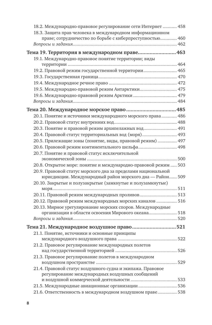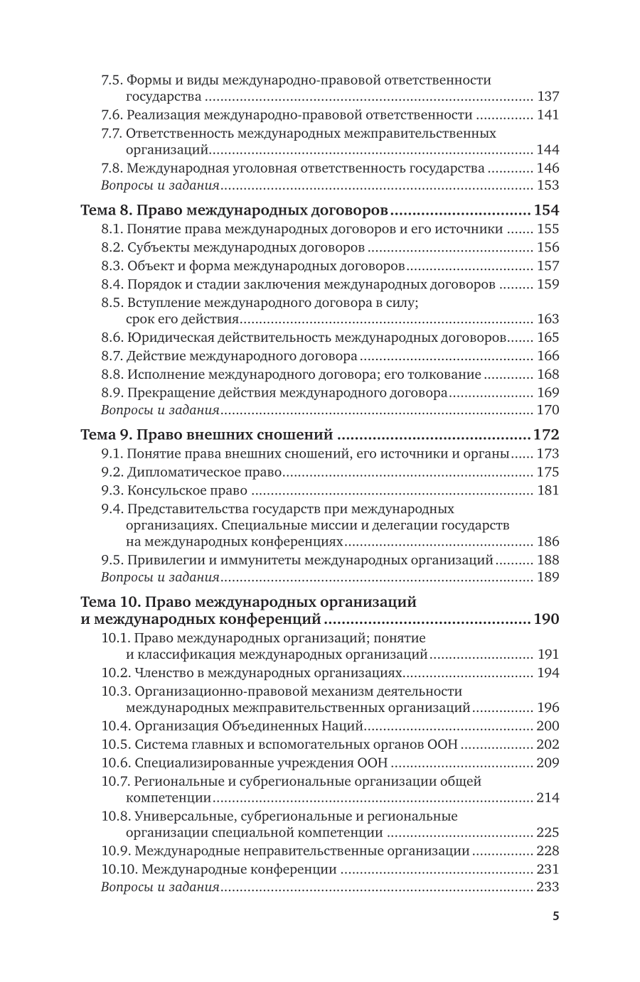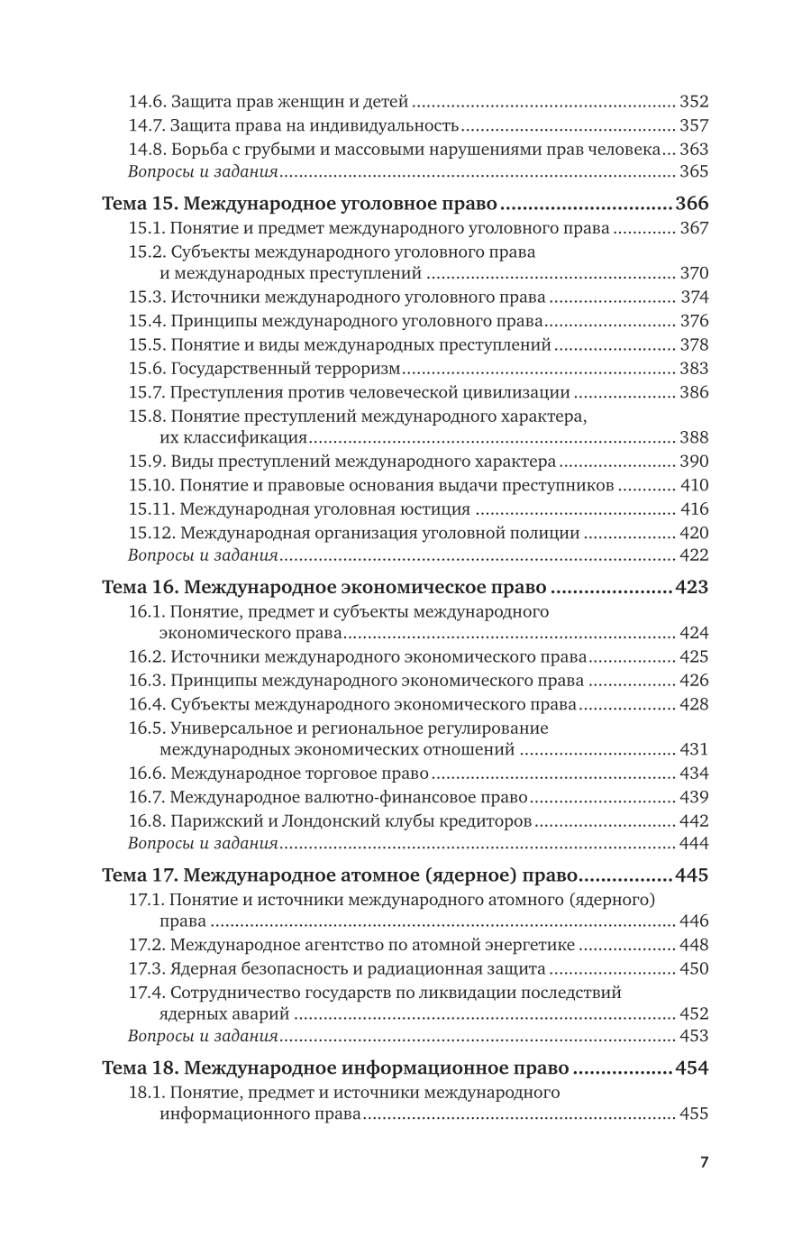 В курсе освещаются основные проблемы современного международного права. В общей части традиционно излагаются общие вопросы теории международного права. Особое внимание уделяется процессу создания норм международного права; их специфике и отличию от внутригосударственных норм; проблемам соотношения международного и национального права; вопросам реализации международного права; праву международной ответственности. Особенная часть посвящена анализу отдельных отраслей международного права. Наиболее подробно проанализированы те отрасли международного права, которые в настоящее время являются самыми актуальными и проблемными: право международных организаций, право международной безопасности, право вооруженных конфликтов, международное право прав человека, международное уголовное право, международное экономическое право. В курсе отражена авторская концепция международного права, по многим вопросам отличающаяся от концепций других ученых международников. Содержание соответствует актуальным требованиям Федерального государственного образовательного стандарта высшего образования. Для студентов высших учебных заведений, обучающихся по юридическим направлениям.