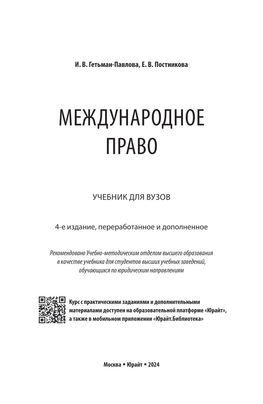 Международное право 4-е изд. пер. и доп. Учебник для вузов (Ирина Викторовна Гетьман-Павлова); ЮРАЙТ, 2024