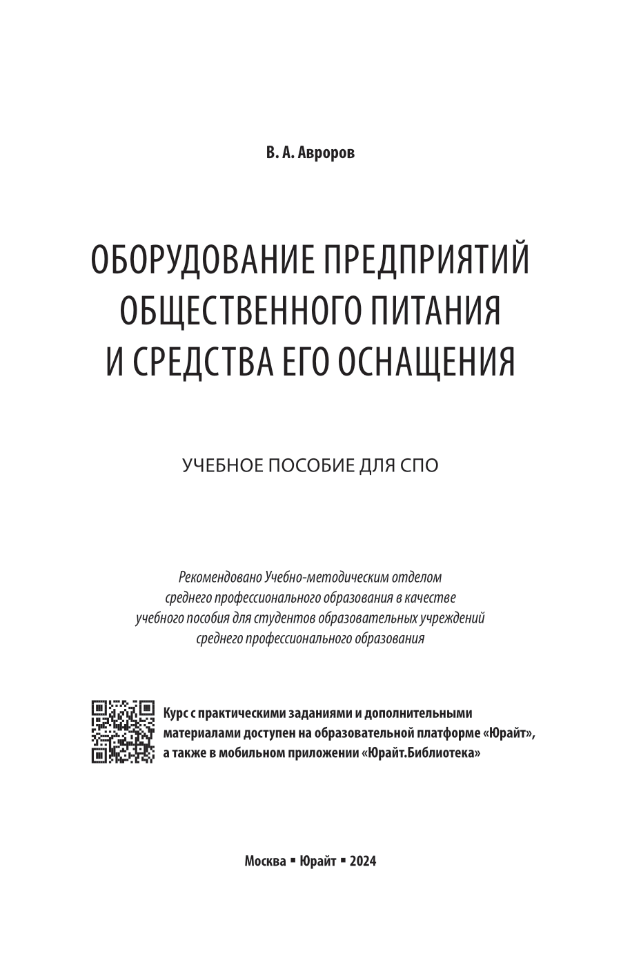 Оборудование предприятий общественного питания и средства его оснащения. Учебное пособие для СПО (Валерий Александрович Авроров); ЮРАЙТ, 2024