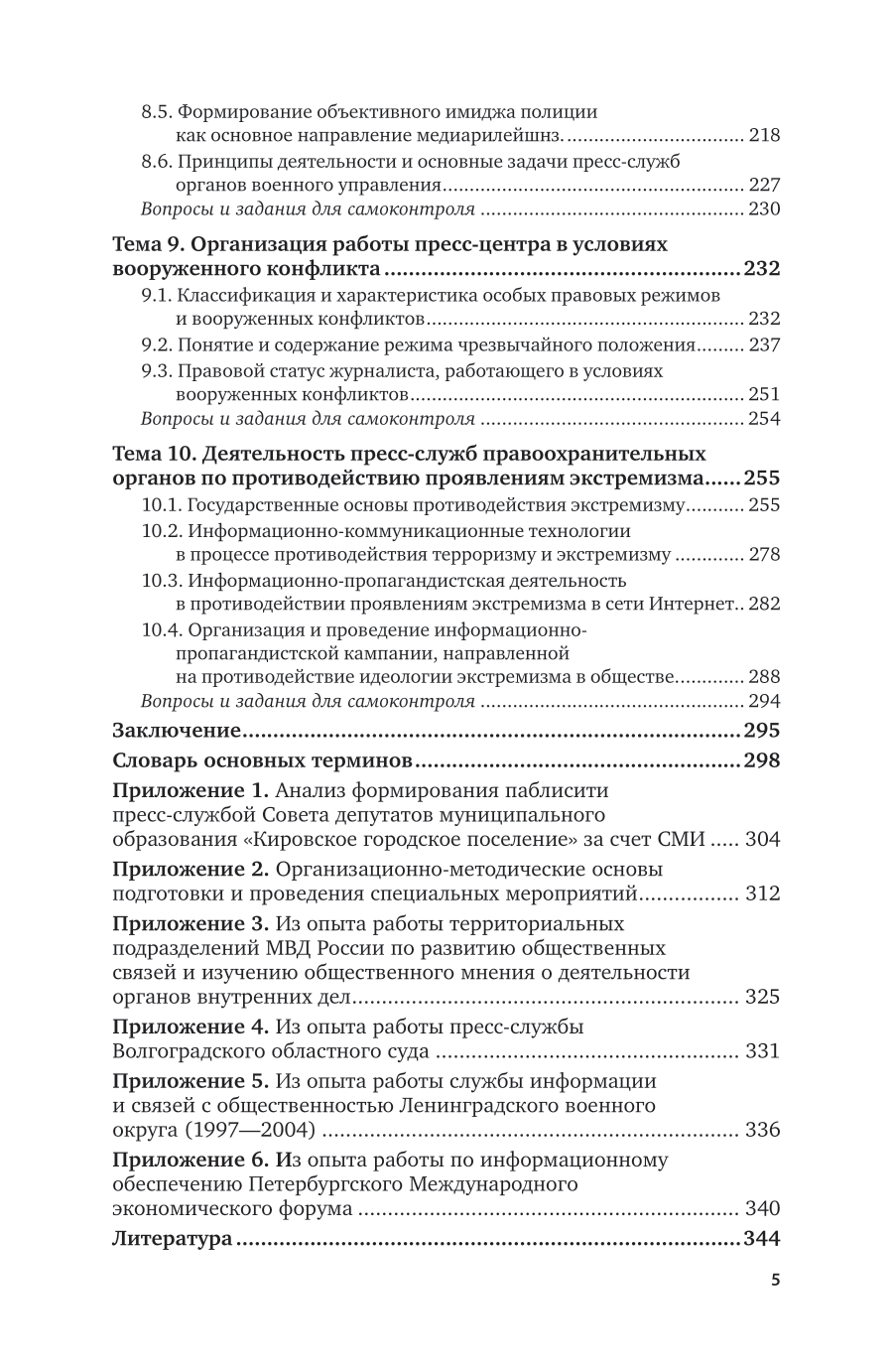 Курс посвящен теоретическим, организационно-правовым и практико-ориентированным основам деятельности пресс-службы в органах государственной власти и местного самоуправления, общественных объединениях и политических партиях, бизнес-структурах. В курсе раскрываются цели, задачи, принципы и особенности работы пресс-службы в организациях (учреждениях). В отдельных темах рассматриваются технологии работы пресс-службы со средствами массовой информации и общественностью, а также обобщается практический опыт функционирования отделов информации и связей с общественностью (пресс-служб), в том числе в период социальных кризисов, вооруженных конфликтов, проведения контртеррористических и миротворческих операций. Курс соответствует требованиям Федерального государственного образовательного стандарта высшего образования. Курс рассчитан на бакалавров и магистрантов, обучающихся по направлениям подготовки «Реклама и связи с общественностью», «Государственное и муниципальное управление», «Журналистика», а также на слушателей системы дополнительного профессионального образования и практических работников в данной сфере деятельности.
