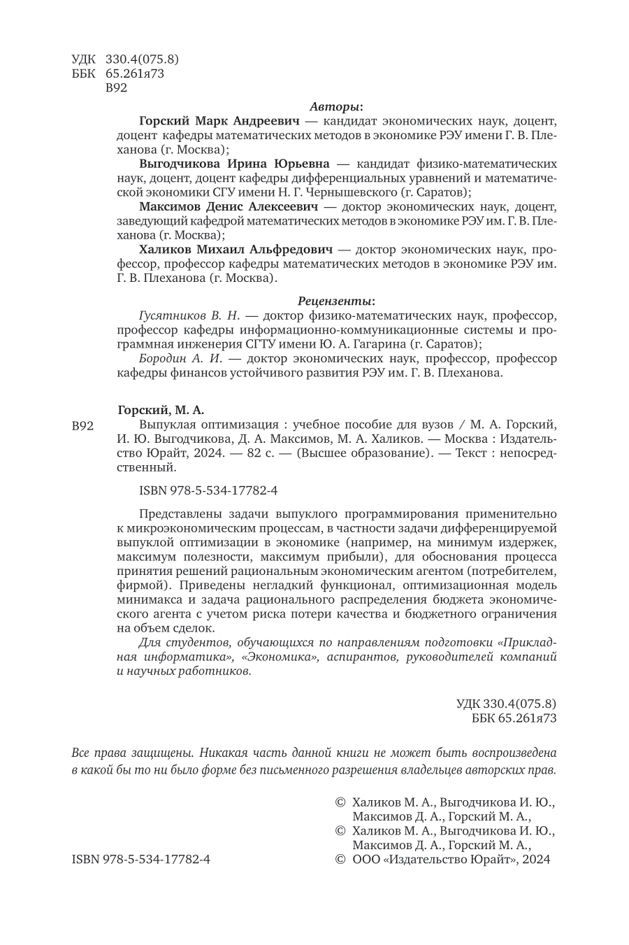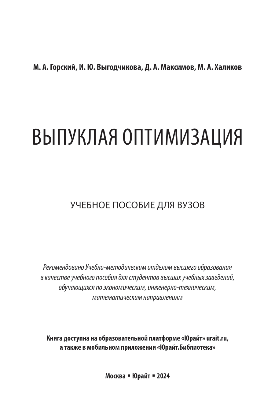 Выпуклая оптимизация. Учебное пособие для вузов (Горский Марк Андреевич; Выгодчикова Ирина Юрьевна; Максимов Денис Алексеевич), 2024