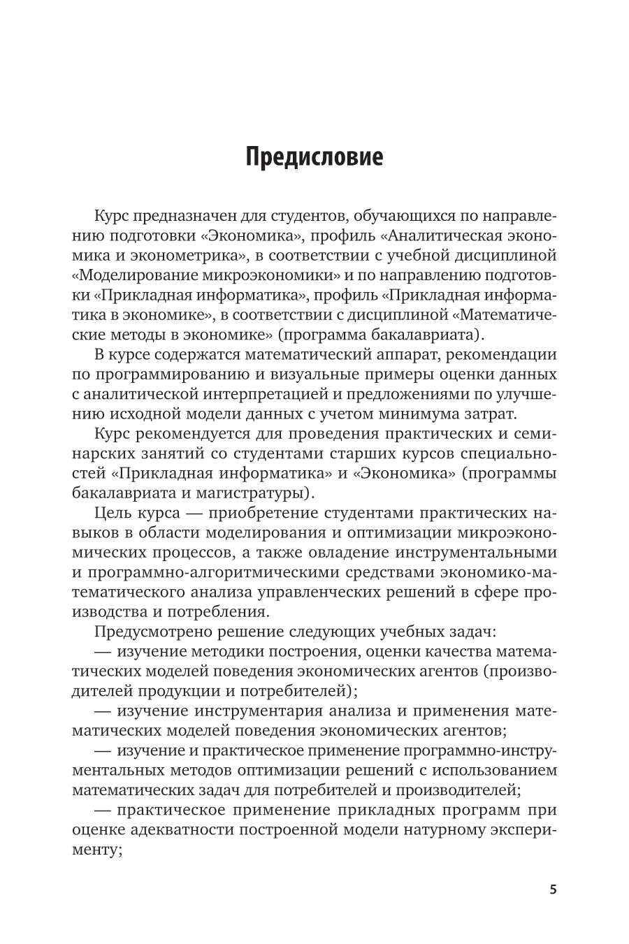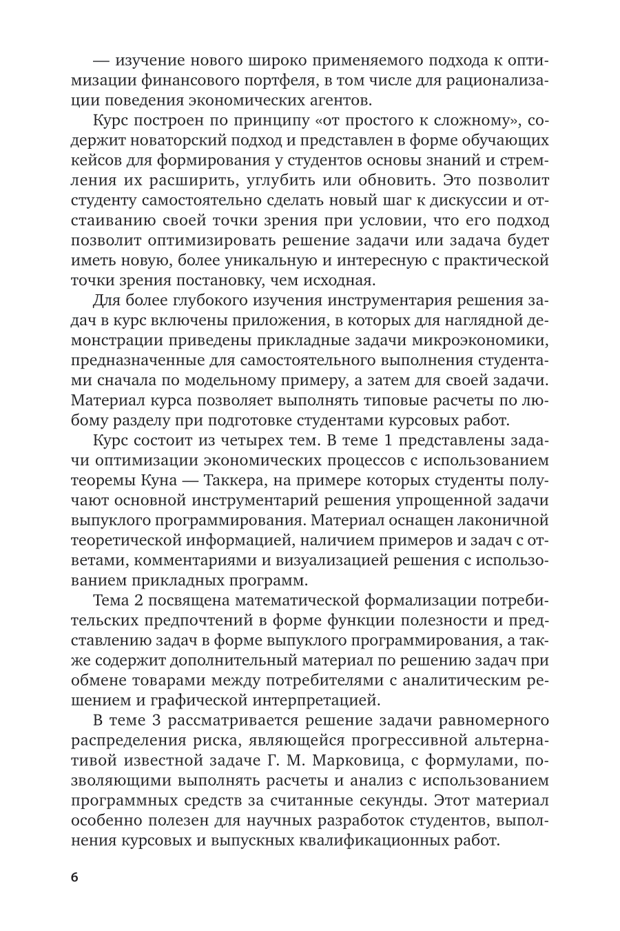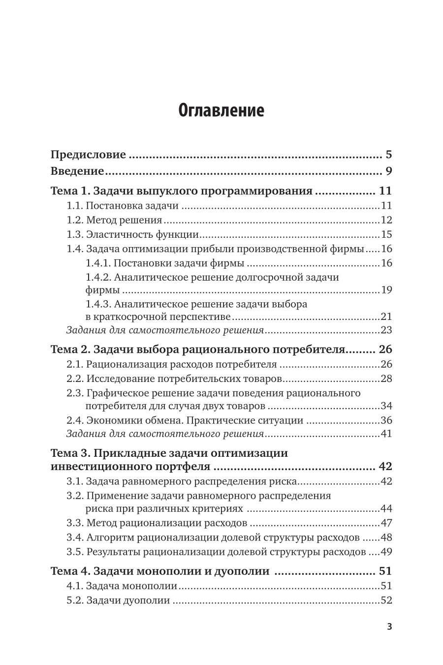 Представлены задачи выпуклого программирования применительно к микроэкономическим процессам, в частности задачи дифференцируемой выпуклой оптимизации в экономике (например, на минимум издержек, максимум полезности, максимум прибыли), для обоснования процесса принятия решений рациональным экономическим агентом (потребителем, фирмой). Приведены негладкий функционал, оптимизационная модель минимакса и задача рационального распределения бюджета экономического агента с учетом риска потери качества и бюджетного ограничения на объем сделок. Для студентов, обучающихся по направлениям подготовки «Прикладная информатика», «Экономика», аспирантов, руководителей компаний и научных работников.