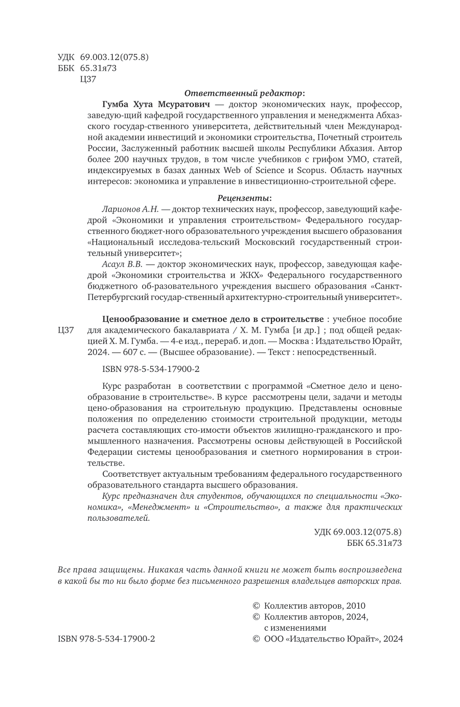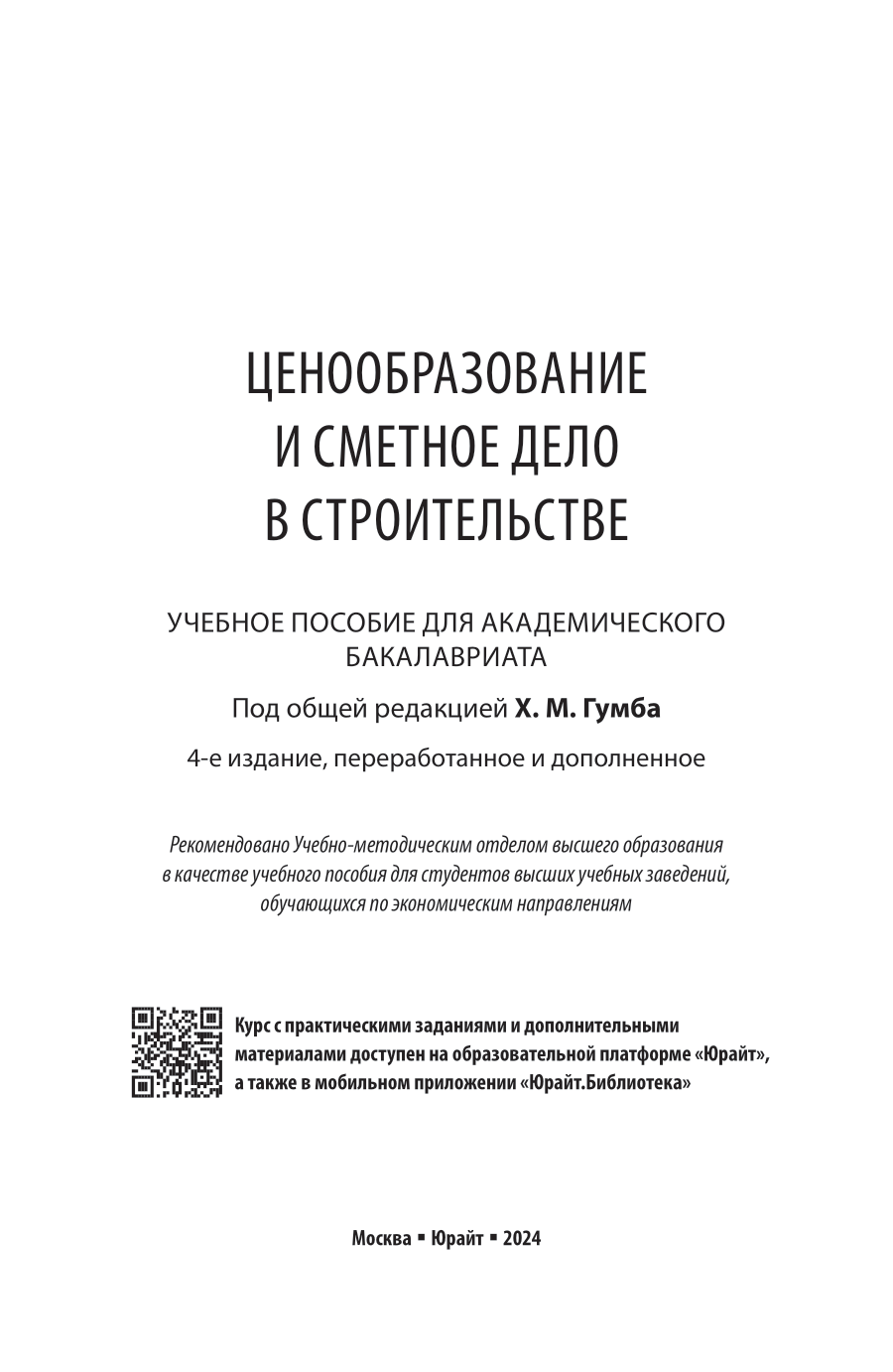 Ценообразование и сметное дело в строительстве 4-е изд. пер. и доп. Учебное пособие для академического бакалавриата (Гумба Хута Мсуратович; Уварова Светлана Сергеевна; Беляева Светлана Викторовна; Власенко Вячеслав Александрович; Жутаева Евгения Николаевна; Болгов Владимир Александрович; Овсянников Андрей Сергеевич), 2024