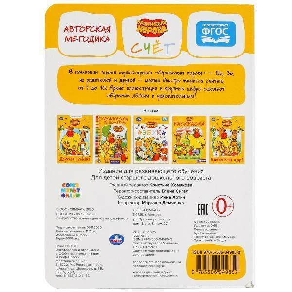 Книга Счет Оранжевая Корова Умка А5 160х220 мм 8 стр (Коллектив авторов), 2020