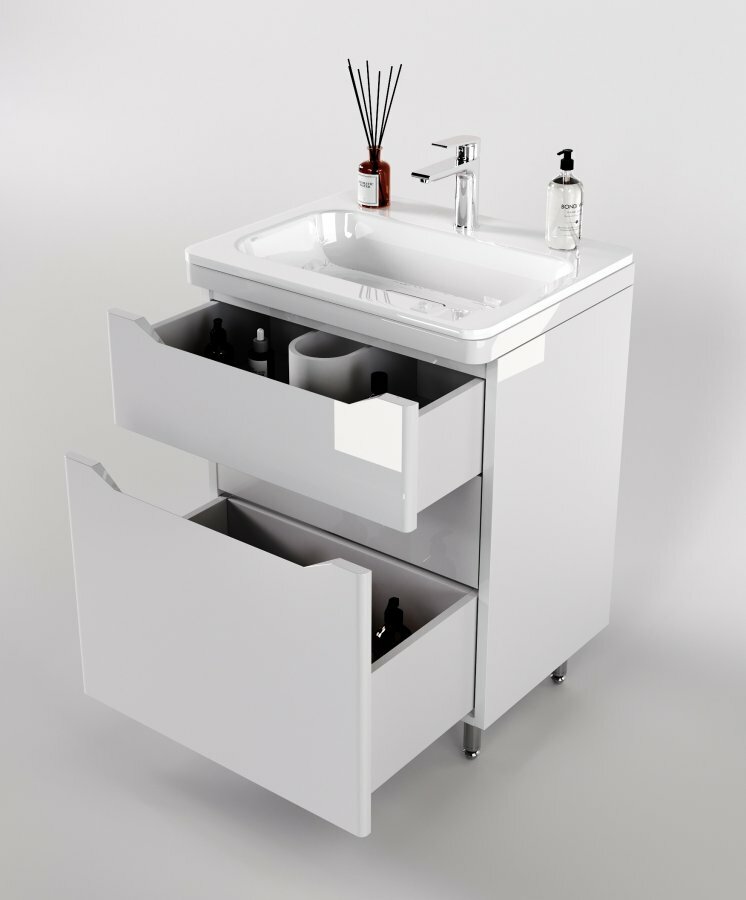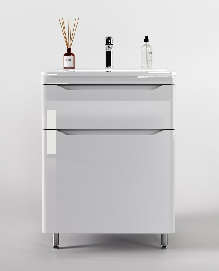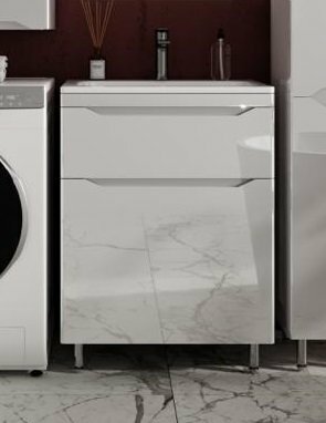 Тумба с раковиной Style Line Марелла 60 Люкс Plus напольная 2 ящика белый глянец Марелла СС-00002396