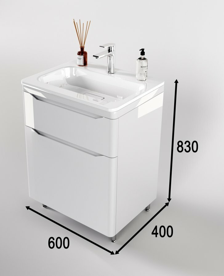 - Размеры корпуса тумбы (ШхВхГ): 600х830х390 мм.