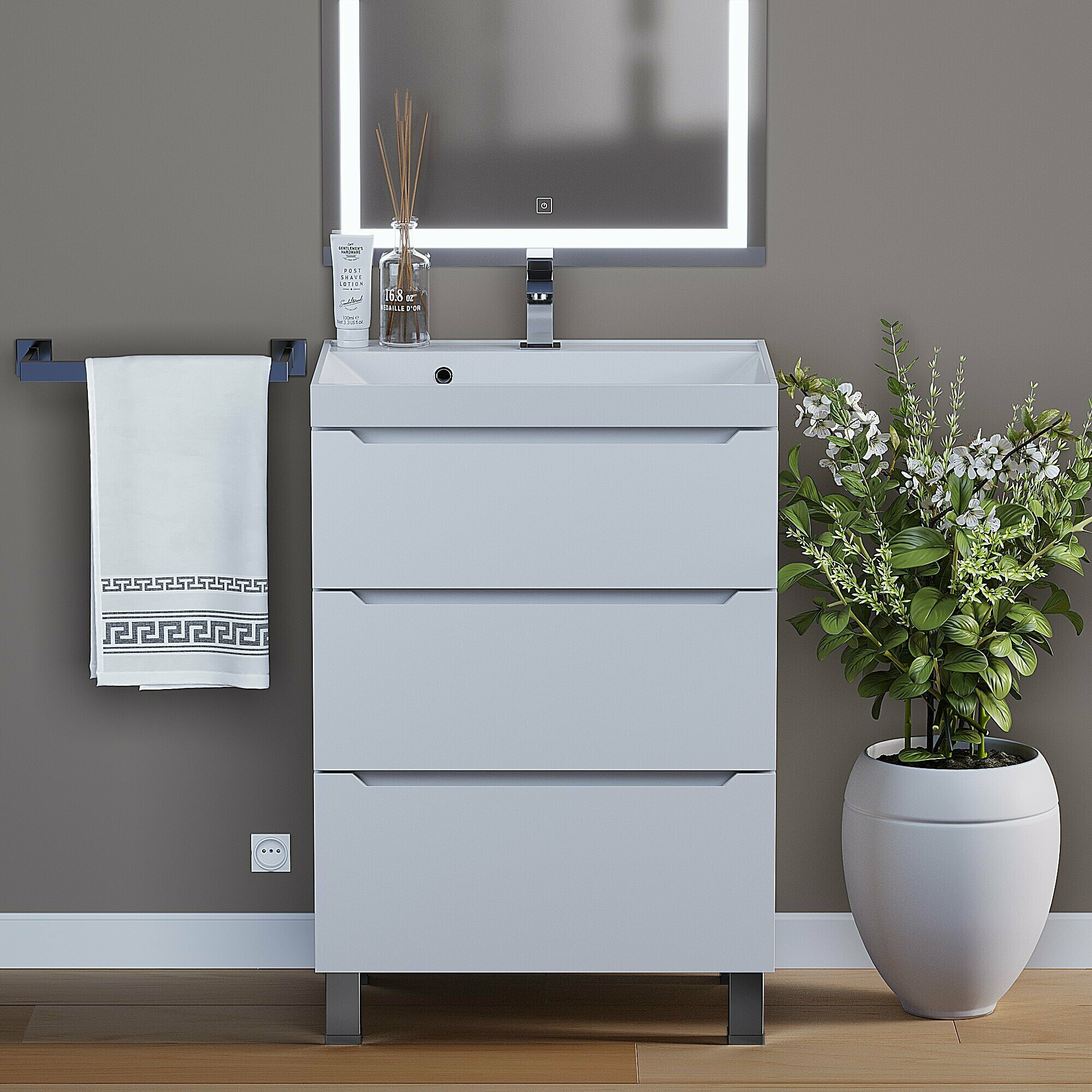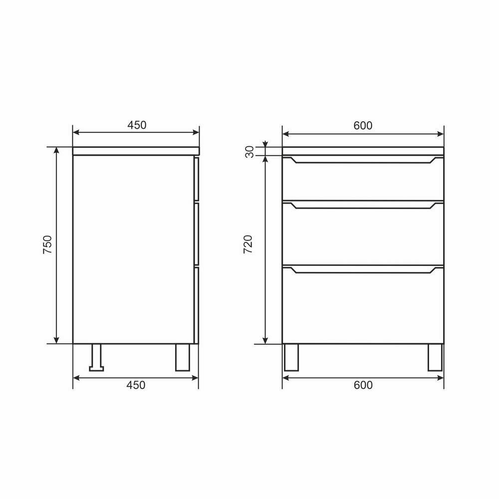 Напольная тумба под раковину для ванной Uperwood Tanos с тремя выдвижными ящиками представляет собой функциональное, надежное и практичное решение, которое отлично впишется в любой современный дизайн ванной комнаты.Элегантный минималистичный дизайн тумбы дополняет ее безупречная матовая поверхность.Фасад и боковые стенки изделия, выполненные из МДФ, покрыты эмалью Hesse (производство Германия). Толщина МДФ 16 мм.Выдвижные ящики изготовлены из влагостойкой ЛДСП. Ящики оснащены доводчиками. Качественная фурнитура премиум-класса.Размерный ряд тумб под раковину Tanos представлен моделями от 60 и 70 см.Для тумб Tanos подходят раковины Classic соответствующих размеров 60 и 70 см.Тумба поставляется в собранном виде, в комплект входят ножки для напольного монтажа.