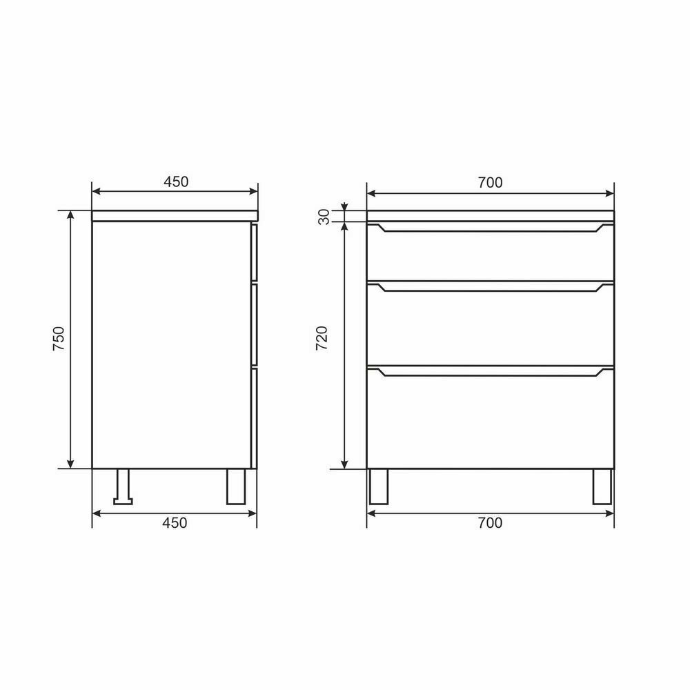 Напольная тумба под раковину для ванной Uperwood Tanos с двумя выдвижными ящиками представляет собой функциональное, надежное и практичное решение, которое отлично впишется в любой современный дизайн ванной комнаты.Элегантный минималистичный дизайн тумбы дополняет ее безупречная матовая поверхность.Фасад и боковые стенки изделия, выполненные из МДФ, покрыты эмалью Hesse (производство Германия). Толщина МДФ 16 мм.Выдвижные ящики изготовлены из влагостойкой ЛДСП. Ящики оснащены доводчиками. Качественная фурнитура премиум-класса.Размерный ряд тумб под раковину Tanos представлен моделями от 60 и 70 см.Для тумб Tanos подходят раковины Classic соответствующих размеров 60 и 70 см.Тумба поставляется в собранном виде, в комплект входят ножки для напольного монтажа.