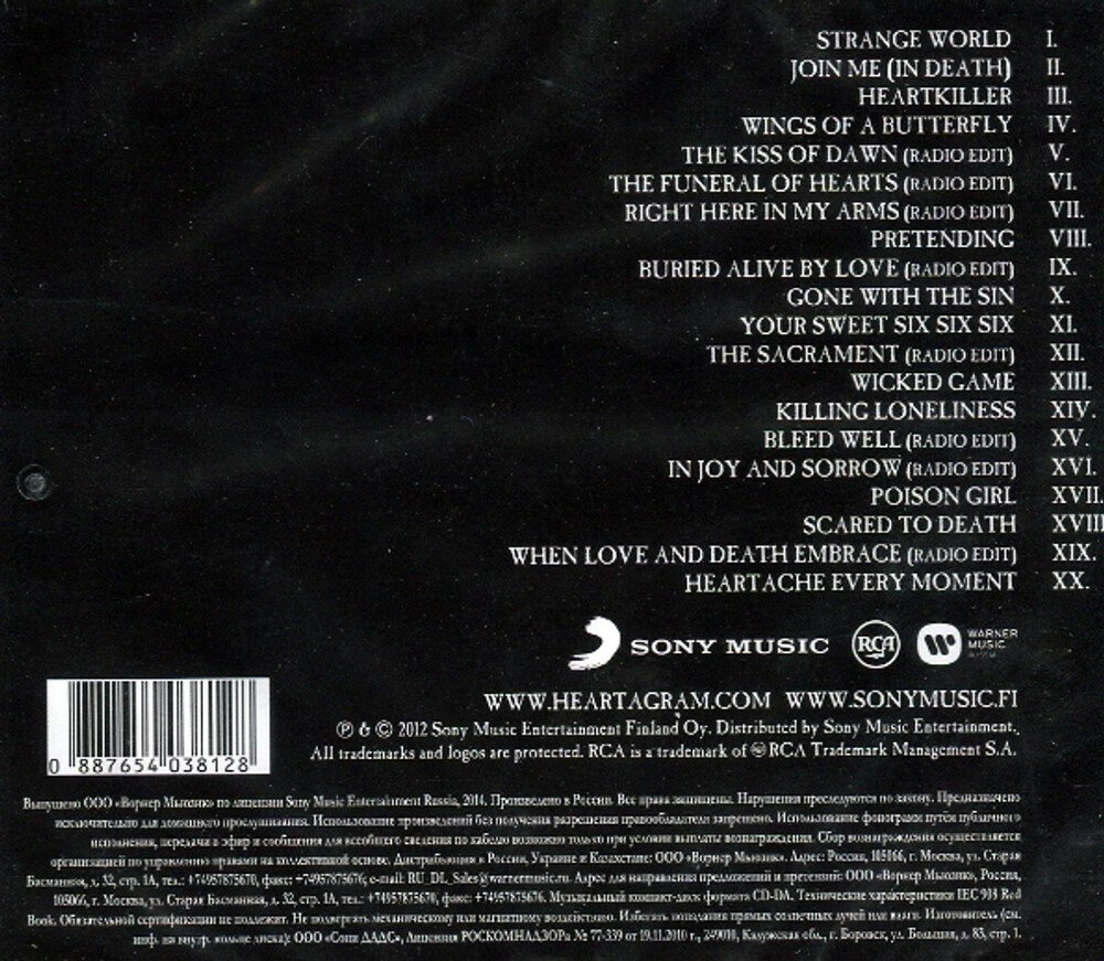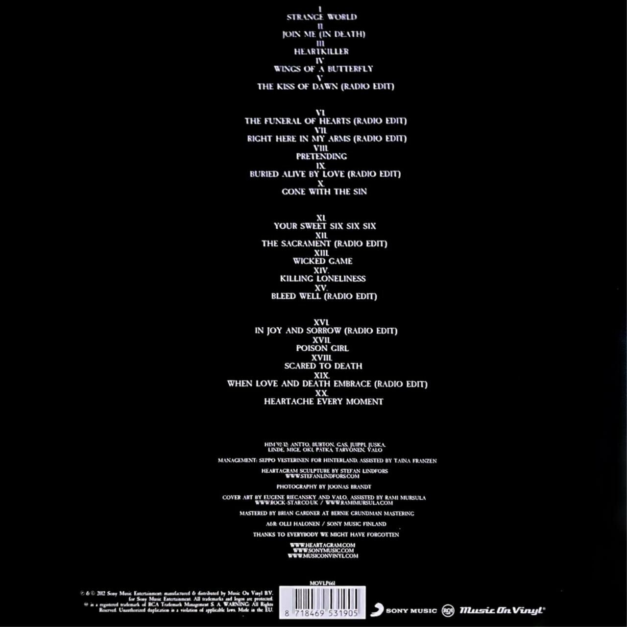 | Трек-лист | Strange World, Join Me (In Death), Heartkiller, Wings Of A Butterfly, The Kiss Of Dawn (Radio Edit), The Funeral Of Hearts (Radio Edit), Right Here In My Arms (Radio Edit), Pretending, Buried Alive By Love (Radio Edit), Gone With The Sin, Your Sweet Six Six Six, The Sacrament (Radio Edit), Wicked Game, Killing Loneliness, Bleed Well (Radio Edit), In Joy And Sorrow (Radio Edit), Poison Girl, Scared To Death, When Love And Death Embrace (Radio Edit), Heartache Every Moment |