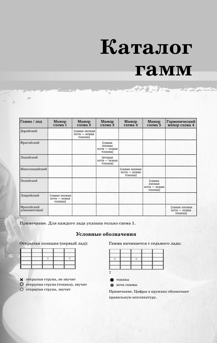 Компактный каталог гамм для игры на гитаре - ваш проводник в мир музыки! На страницах каталога вы найдете аппликатуры самых популярных гамм, включая гармонические и мажорные гаммы. Представленные в справочнике таблицы пригодятся как начинающему, так и опытному гитаристу, а наглядные иллюстрации с расположением ладов помогут разобраться в самых сложных, на первый взгляд, комбинациях. Сделайте свой шаг на пути совершенствования навыка игры на гитаре!