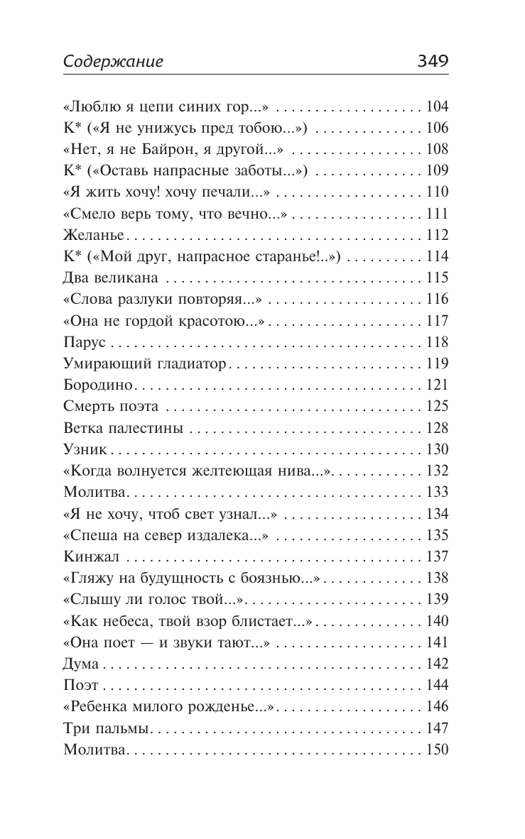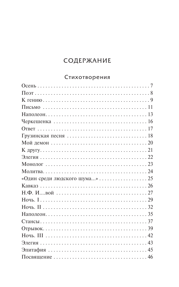 Помимо стихотворений в издание вошли поэмы, среди которых романтические и пронизанные атмосферой Кавказа "Демон" и "Мцыри", а также "Песня про царя Ивана Васильевича, молодого опричника и удалого купца Калашникова".?