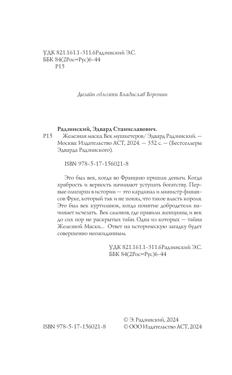 Железная маска. Век мушкетеров (Эдвард Станиславович Радзинский); АСТ, 2024