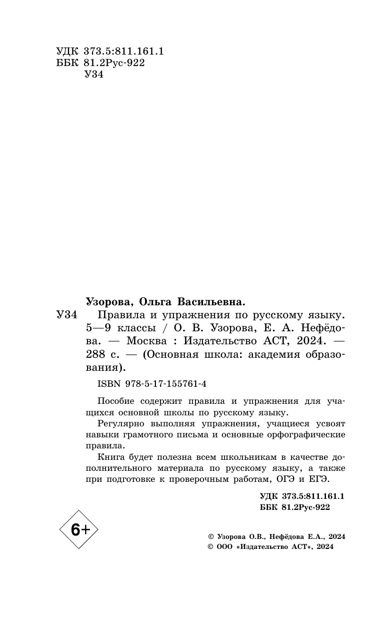 Все правила и упражнения по русскому языку. 5-9 классы (Елена Алексеевна Нефедова, Ольга Васильевна Узорова); АСТ, 2025