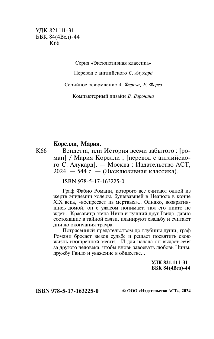 Вендетта или История всеми забытого (Мария Корелли); АСТ, Neoclassic, 2024