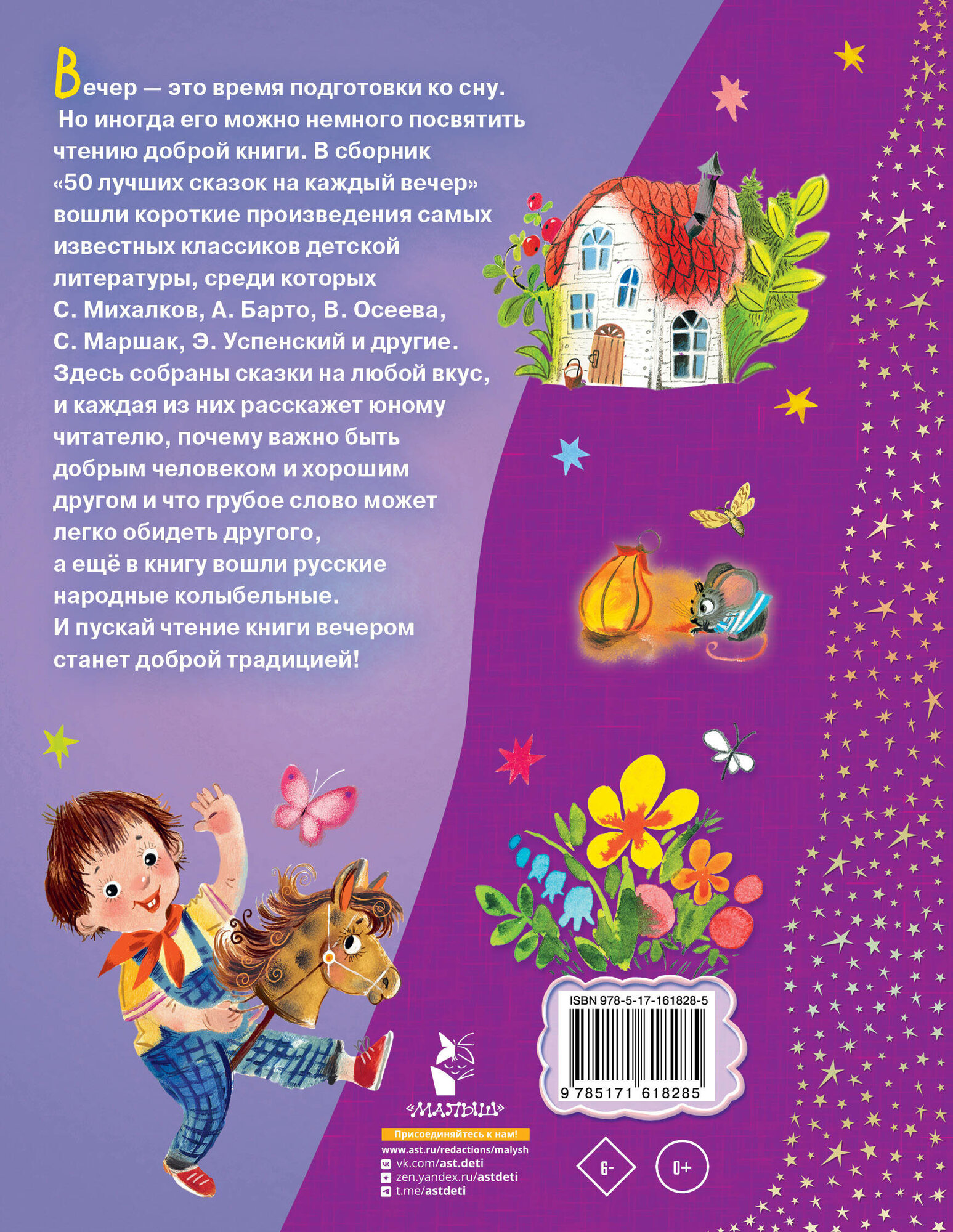 Вечер — это время подготовки ко сну. Но иногда его можно немного посвятить чтению доброй книги. В сборник «50 лучших сказок на каждый вечер» вошли короткие произведения самых известных классиков детской литературы, среди которых С. Михалков, А. Барто, В. Осеева, С. Маршак, Э. Успенский и другие. Здесь собраны сказки на любой вкус, и каждая из них расскажет юному читателю, почему важно быть добрым человеком и хорошим другом и что грубое слово может легко обидеть другого, а ещё в книгу вошли русские народные колыбельные. И пускай чтение книги вечером станет доброй традицией!