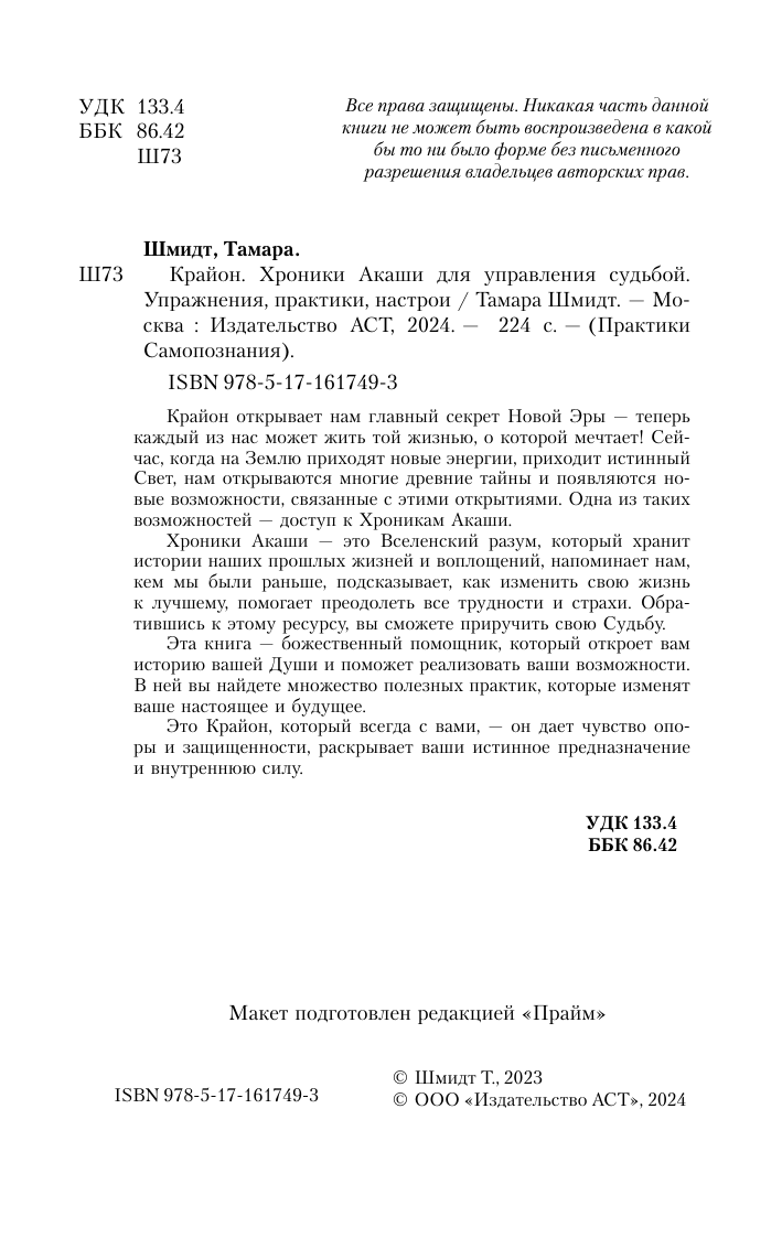 Крайон. Хроники Акаши для управления судьбой. Упражнения практики настрои (Тамара Шмидт); Издательство АСТ, 2023