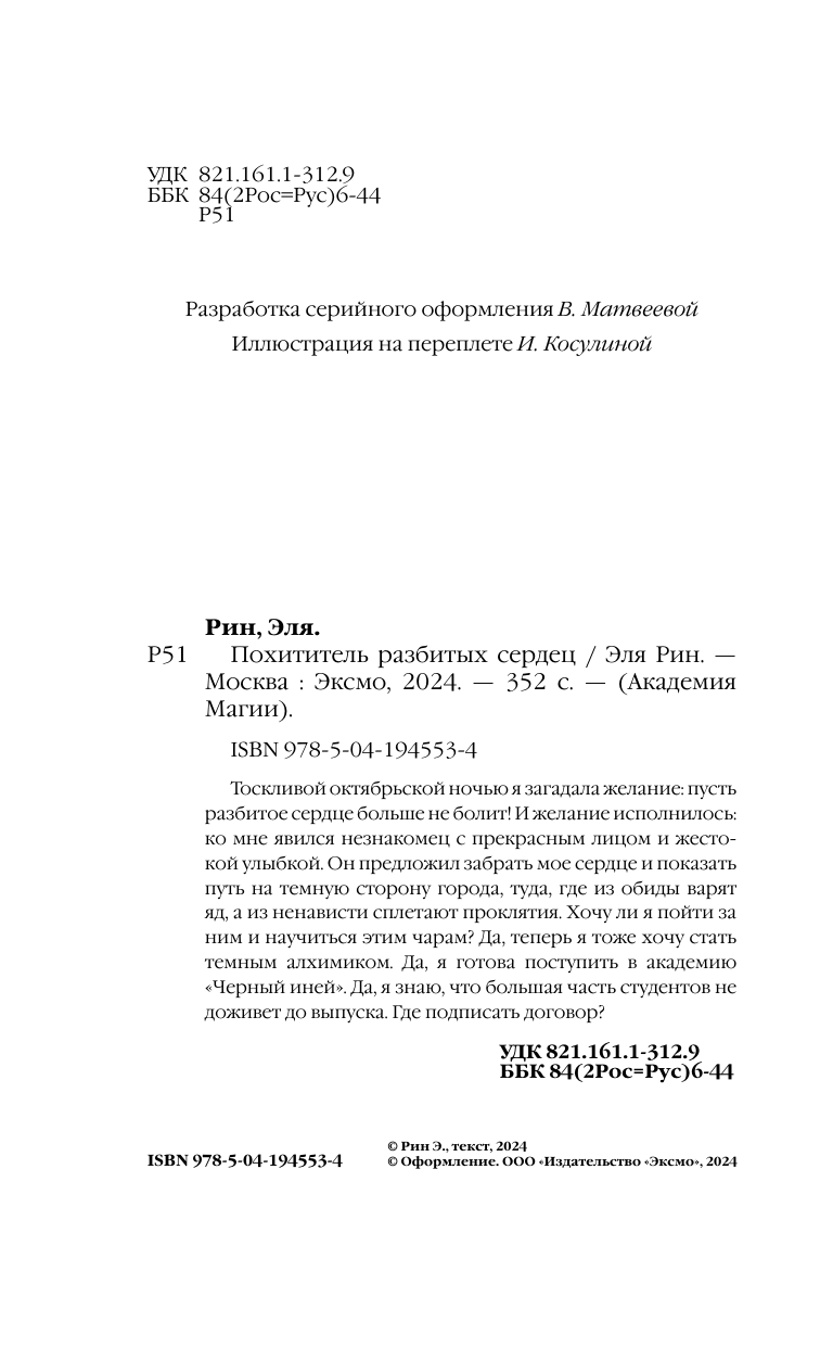 Похититель разбитых сердец (Эля Рин); Эксмо, 2024