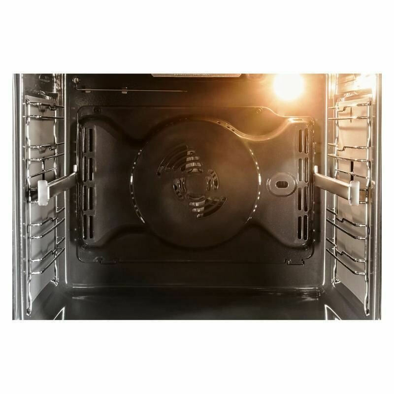 Конвекционный режим нагрева обеспечивает постоянную циркуляцию горячего воздуха в духовке и равномерное приготовление блюд. Подсветка камеры духового шкафа предоставляет возможность проконтролировать готовность блюда. Каталитическая система очистки облегчает уход за прибором. Блокировка от детей препятствует изменению установленных параметров программы.