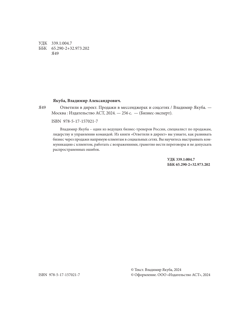 Ответили в директ. Продажи в мессенджерах и соцсетях (Владимир Александрович Якуба); АСТ, 2024