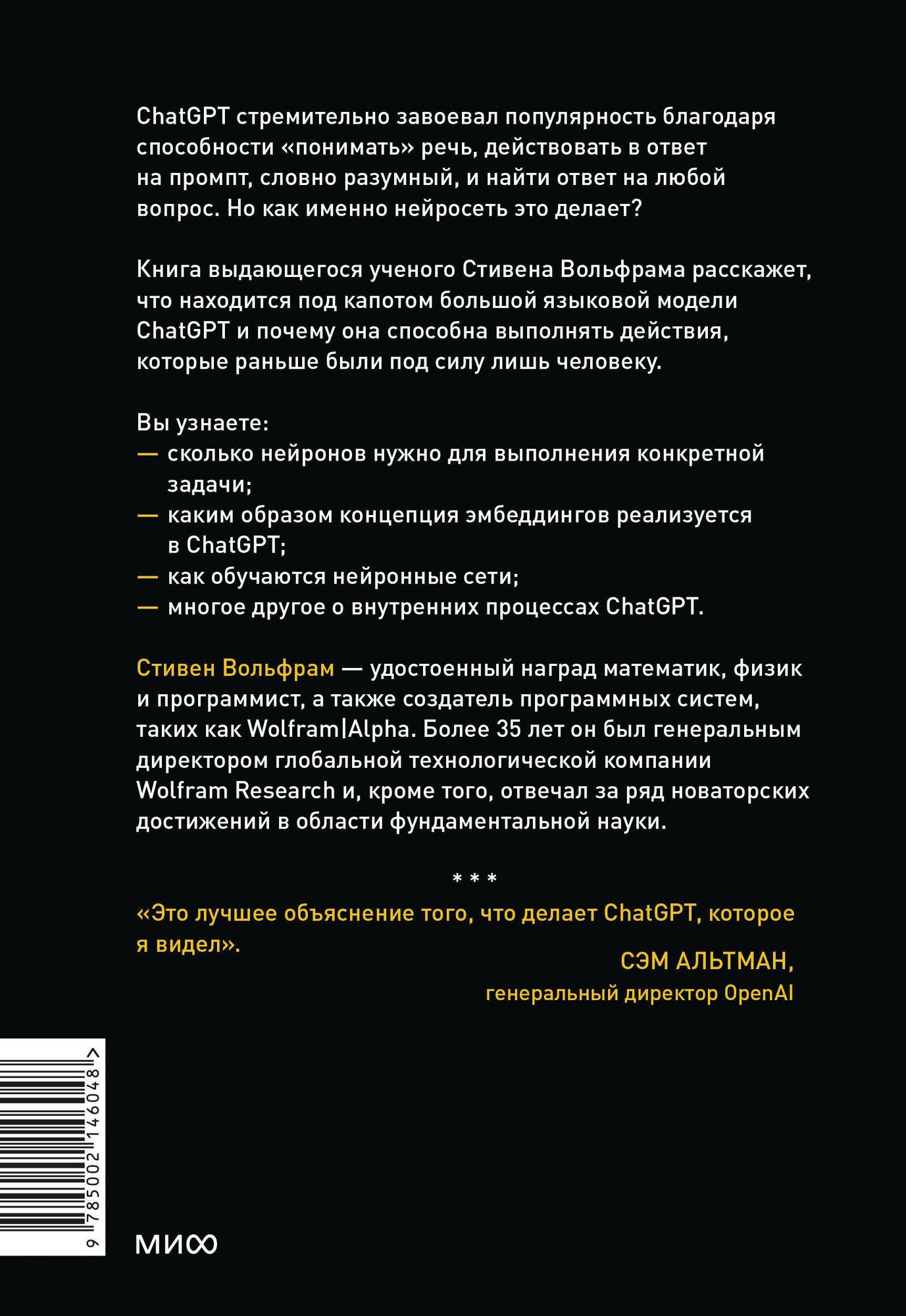 Что скрывает ChatGPT? Полное погружение в принципы работы и спектр возможностей самой известной нейросети в мире (Стивен Вольфрам); Манн, Иванов и Фербер (МИФ), 2023