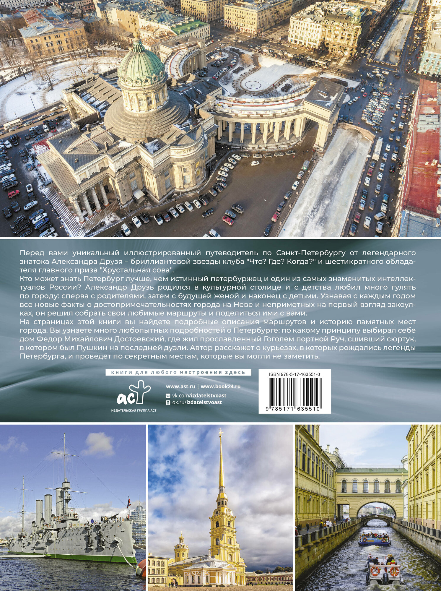 Кто может знать Петербург лучше, чем истинный петербуржец и один из самых знаменитых интеллектуалов России? Александр Друзь родился в культурной столице и с детства любил много гулять по городу: сперва с родителями, затем с будущей женой и, наконец, с детьми. Узнавая с каждым годом все новые факты о достопримечательностях города на Неве и неприметных на первый взгляд закоулках, он решил собрать свои любимые маршруты и поделиться ими с вами.