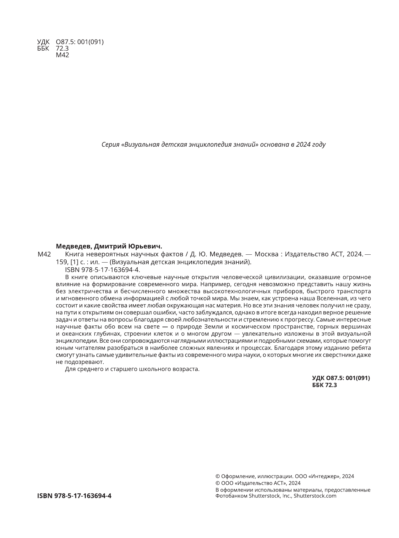 Книга невероятных научных фактов (Дмитрий Медведев); АСТ, Аванта, 2024