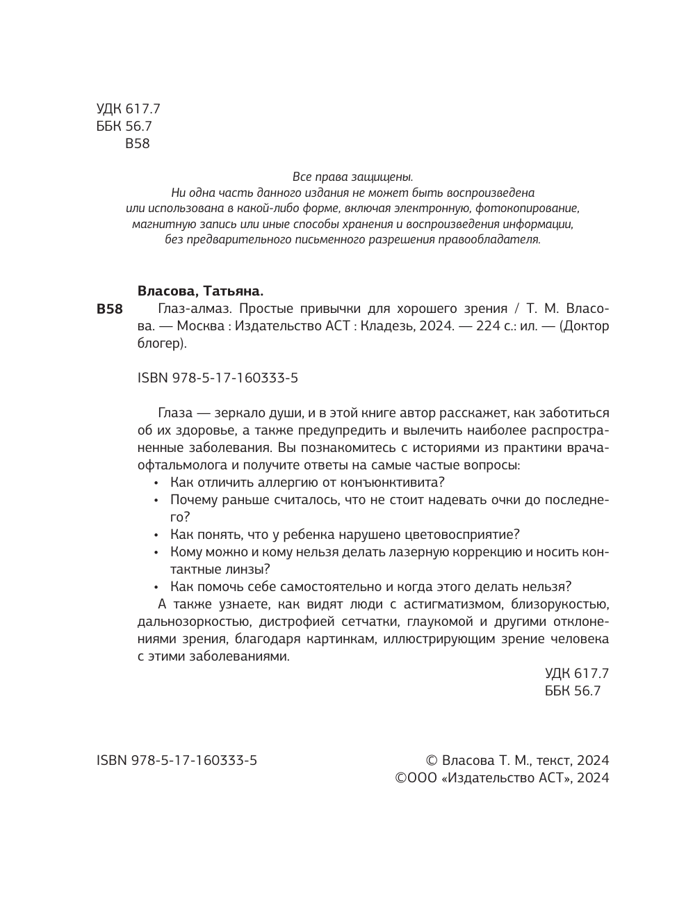 Глаз-алмаз. Простые привычки для хорошего зрения (Татьяна Власова); Издательство АСТ, 2024