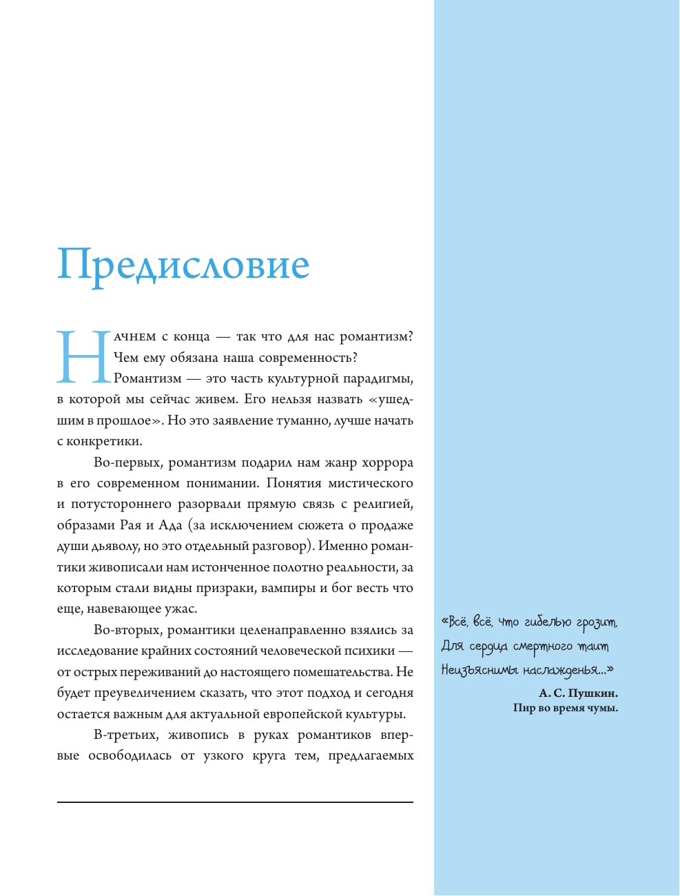 Романтизм — идейное и художественное движение, распространенное в Европе и Америке с конца ХУ! до первой половины ХХ века. Для всего мира романтизм — это часть культурной парадигмы, в которой мы сейчас живем, ведь именно он стал лучшим способом исследования человека во всех его эмоциональных проявлениях. В книге подробно разбирается одно из ярчайших направлений живописи, раскрываются секреты главных картин великих художников и объясняется, почему все-таки романтики — самые сознательные люди на земле.