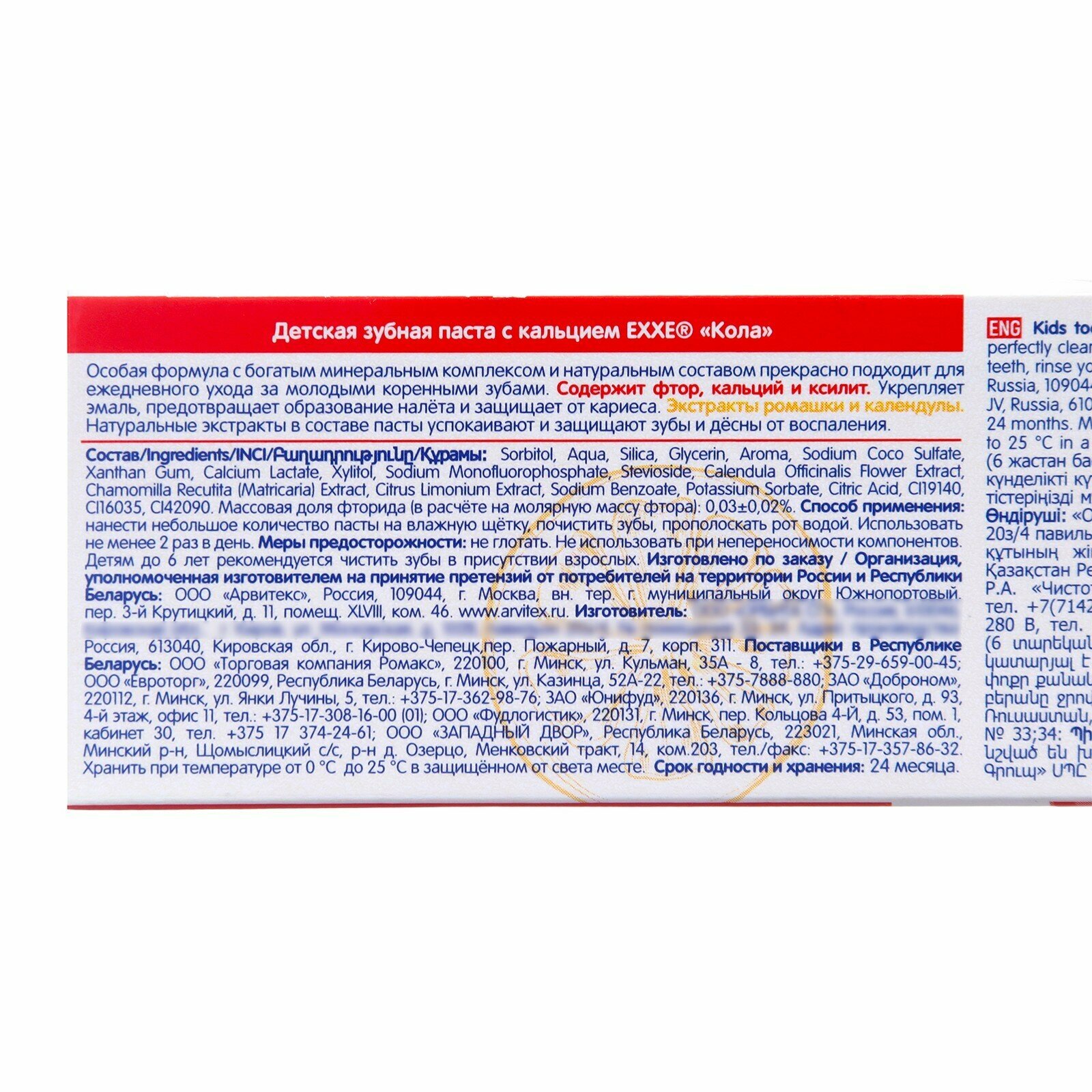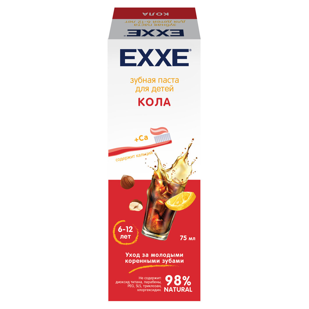 На сегодняшний день товар «Паста зубная кола с кальцием детская с 6 лет EXXE 75мл СП Орбита ООО (2972622)» можно купить с кешбеком в 1 магазине: Яндекс.Маркет