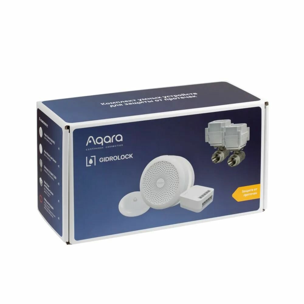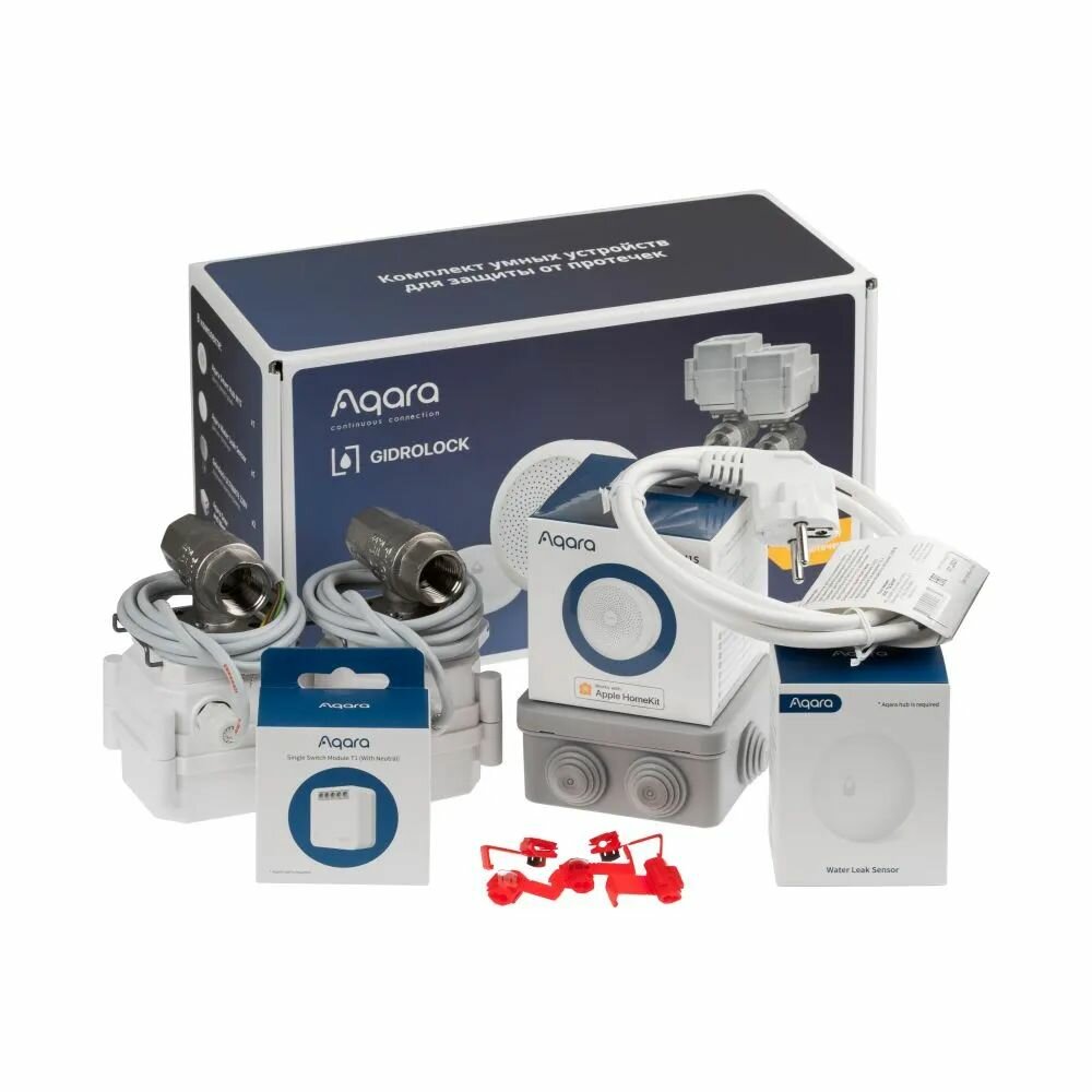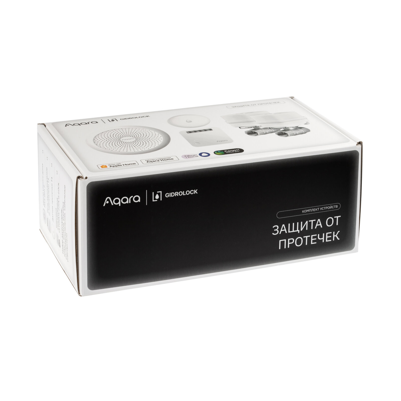 Комплект умного дома Aqara «Защита от протечки» () оснащен особым датчиком, который следует установить в место, где необходимо предотвратить скопление влаги. При обнаружении протечки устройство передает сигнал реле, которое управляет работой шарового электропривода, установленного на трубе. Благодаря этому кран перекрывает подачу воды, что исключает затопление помещения, попадание жидкости на мебель и электрические устройства. Для настройки системы удобно использовать мобильное приложение.