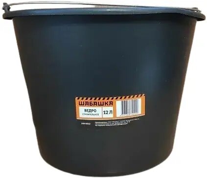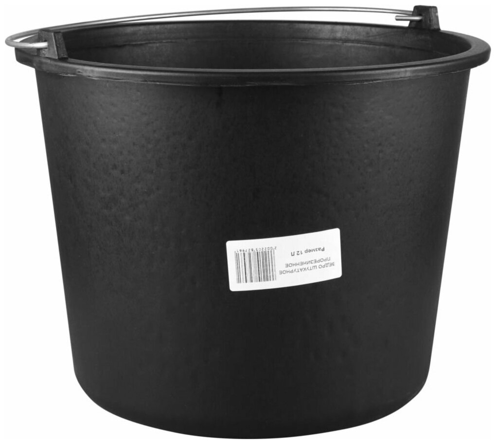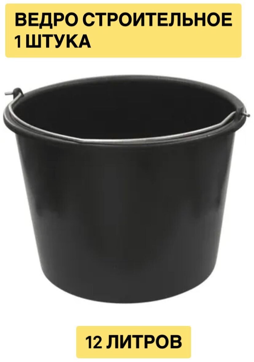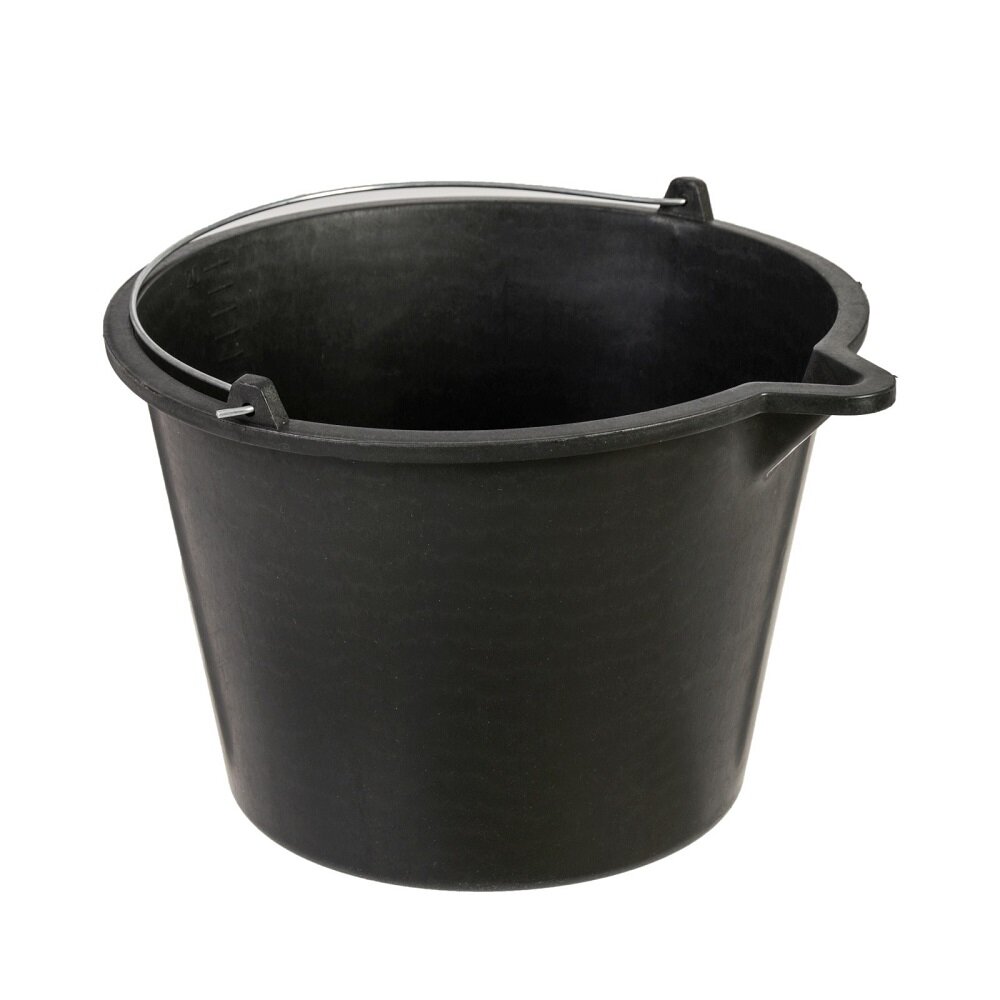 Строительное ведро объемом 12 литров изготовлено из прочной пластмассы.